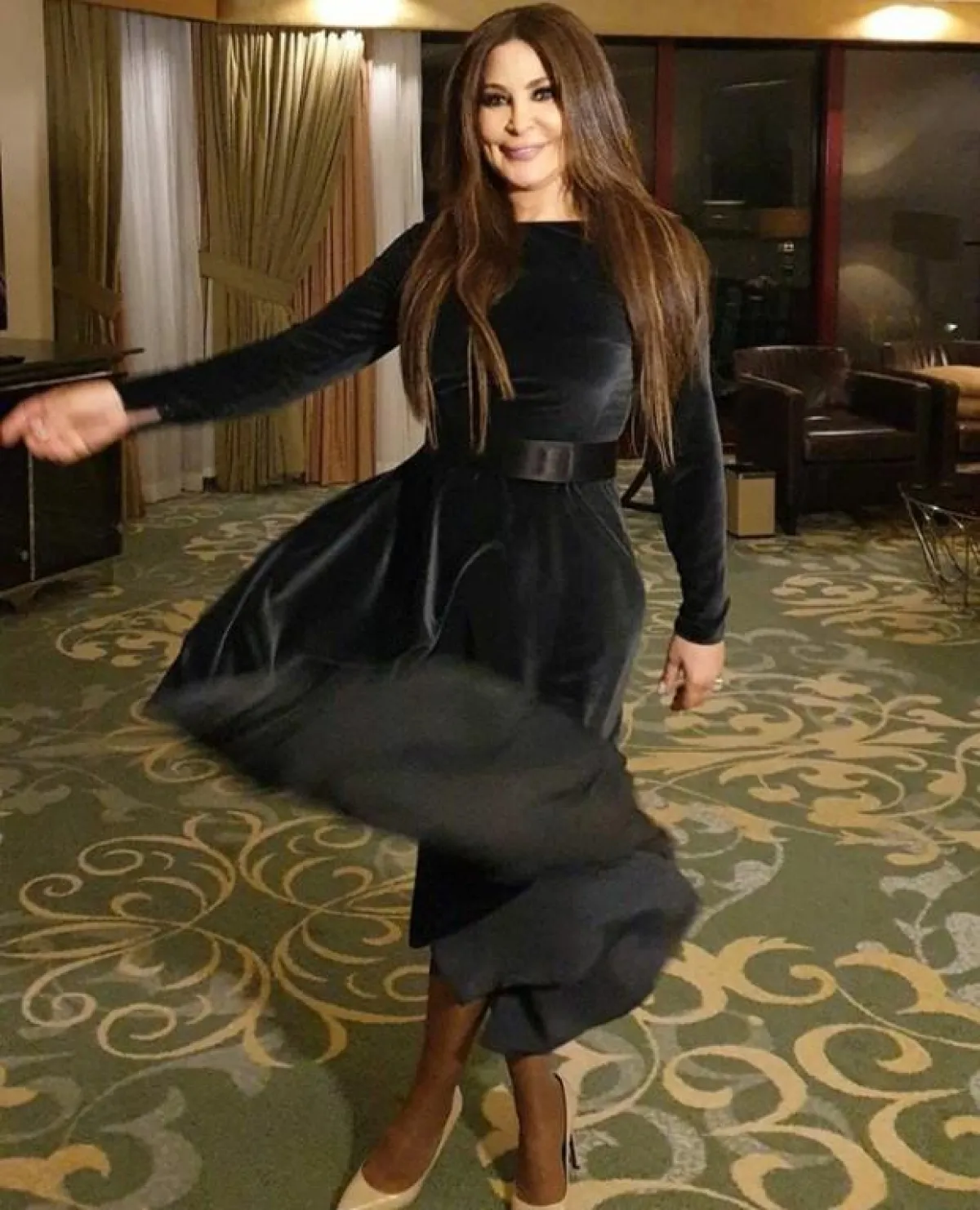 اليسا اختارت في الحفل الأول لها فستاناً أسود طويلاً من المخمل، وأكماماً طويلة، وحزاماً عند الخصر، حيث لاقى بجسدها وكشف أنوثتها بشكل ملفت.