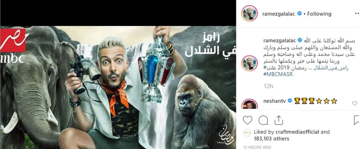 كشف الفنان رامز جلال رسميا عن البوستر الدعائي للموسم الجديد من برنامج المقالب، واختار له اسم "رامز في الشلال"، وعلق على البوستر بدعائه المعتاد بسم الله توكلنا على الله، والله المستعان، واللهم صل وسلم وبارك على سيدنا محمد وعلى آله وصحبه وسلم، وربنا يتمها على خير، ويكملها بالستر.