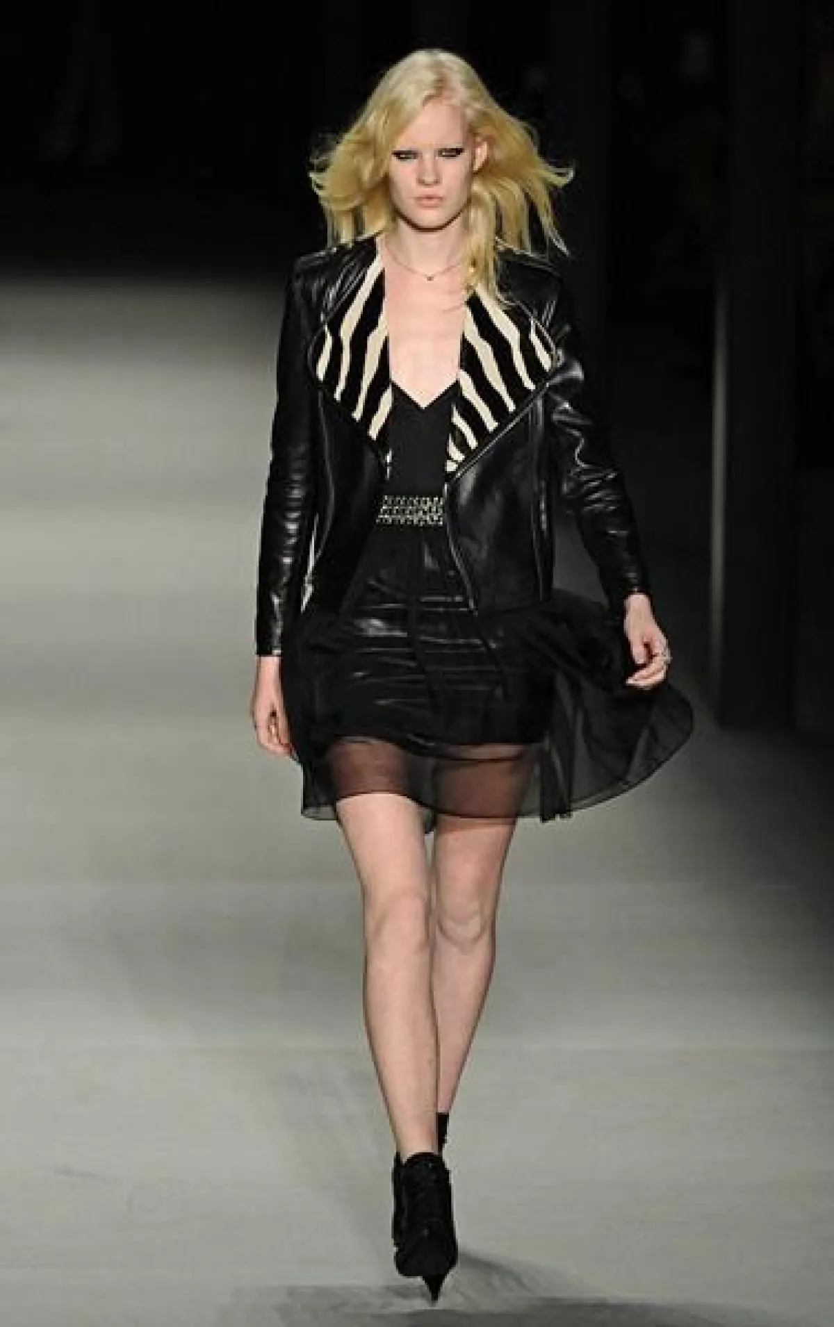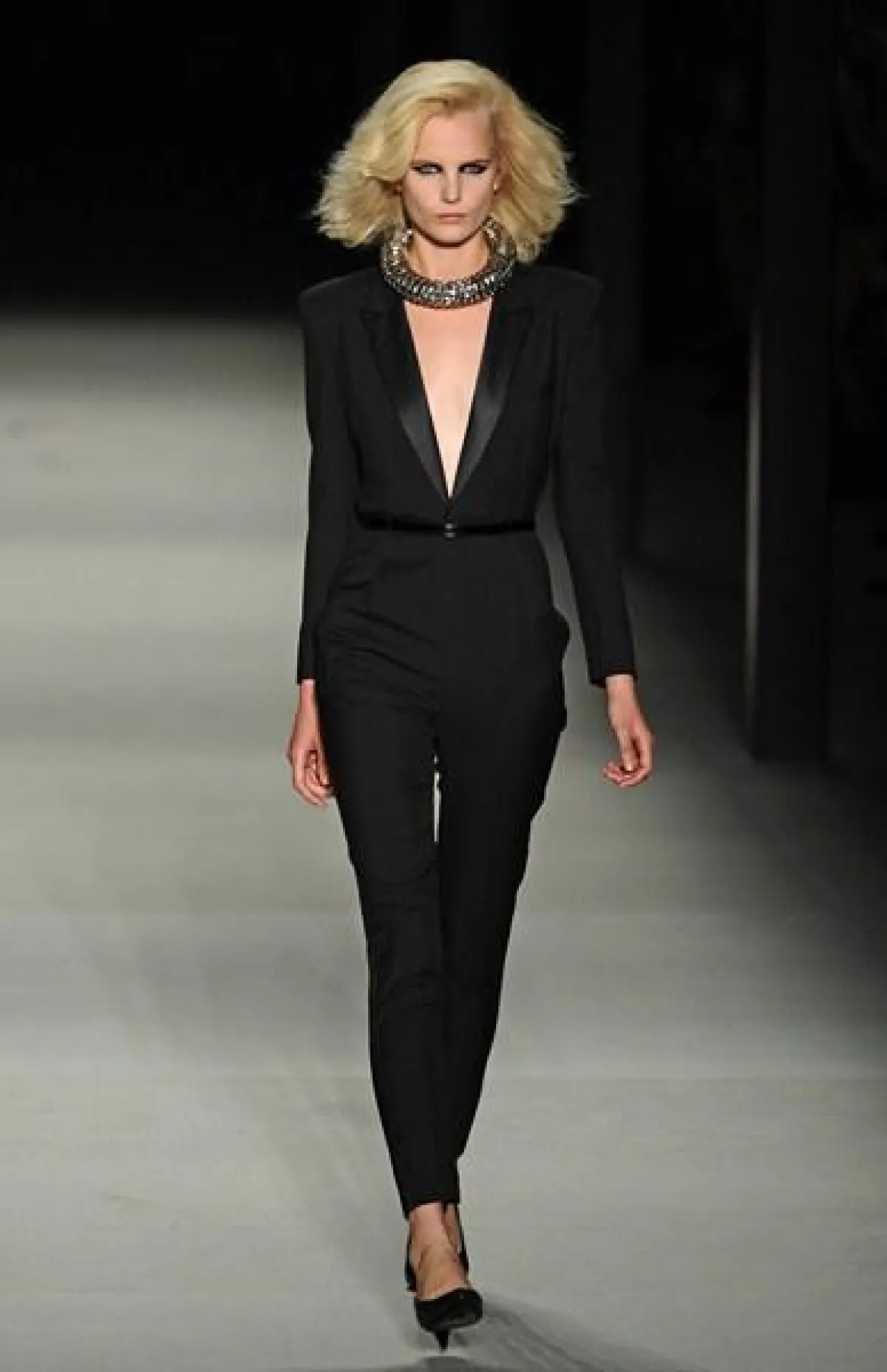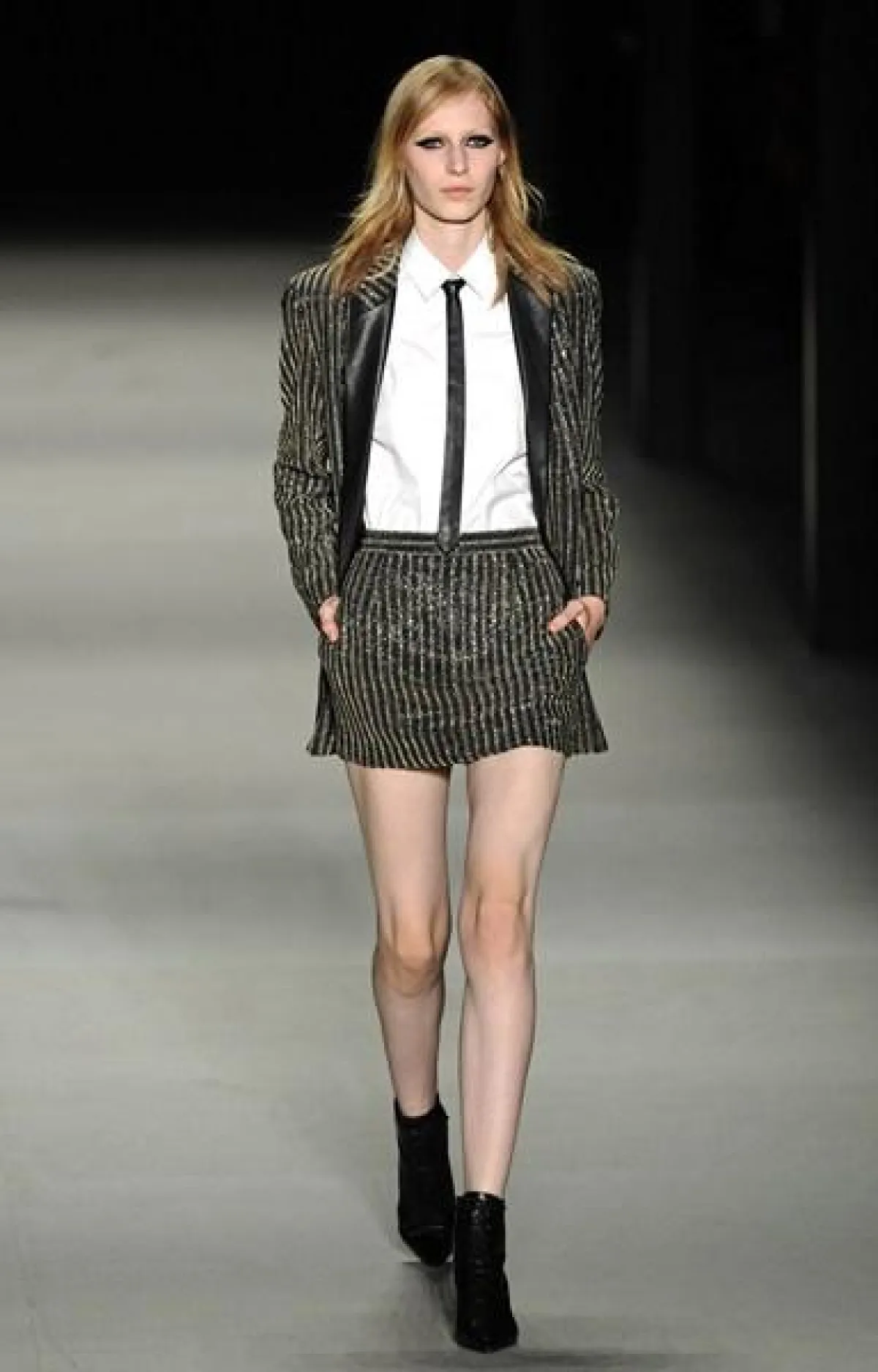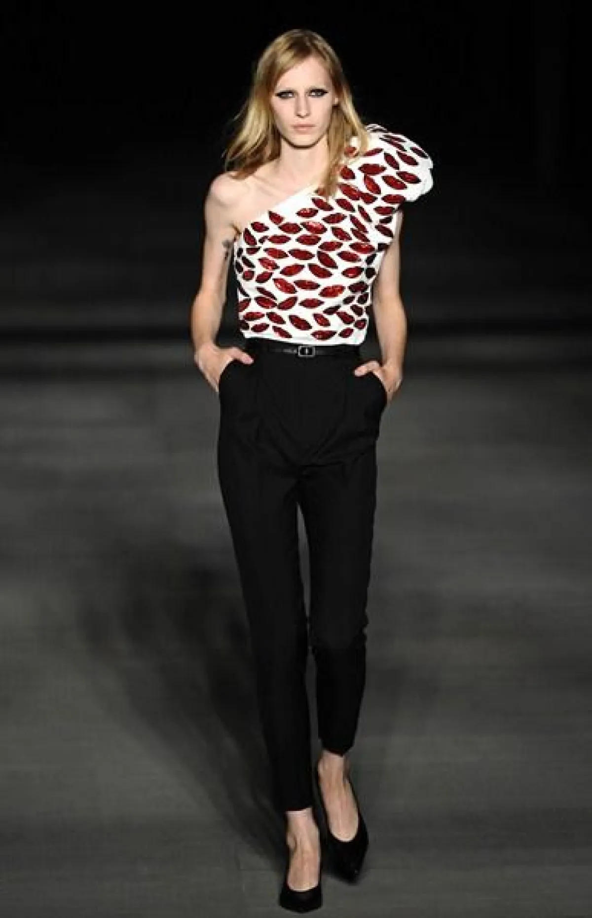 قدمت Saint Laurent مجموعة مميزة لربيع وصيف 2014 في أسبوع الموضة في باريس تراوحت ألوانها بين الأبيض والأسود والذهبي،وتميزت المجموعة بالتنوع بين البدلات والفساتين القصيرة ذات الكتف الواحد.
