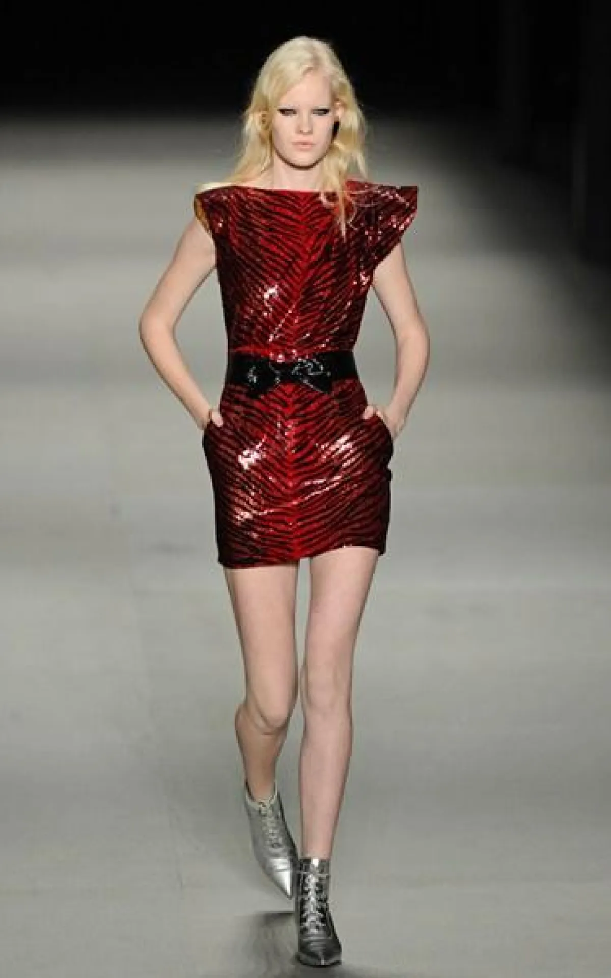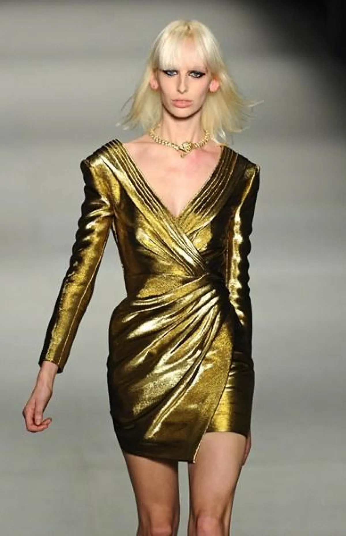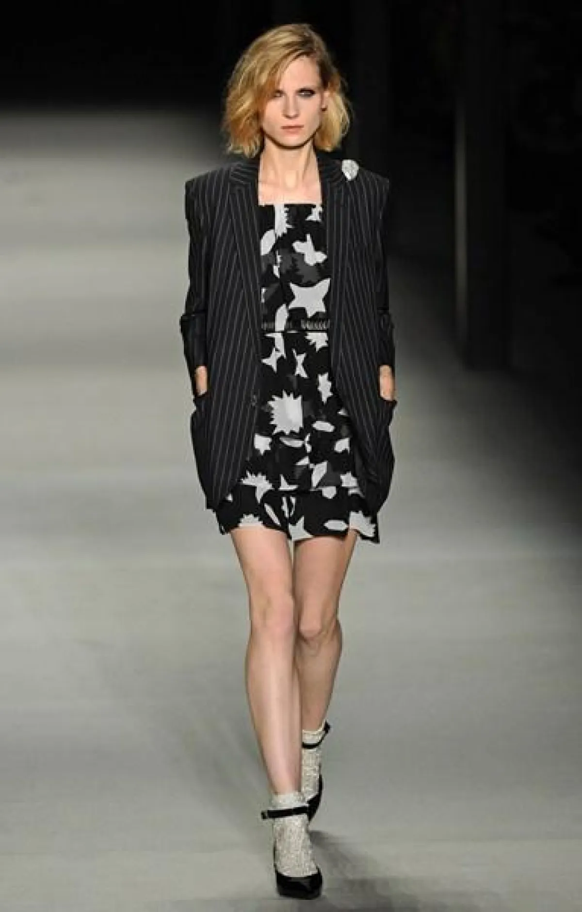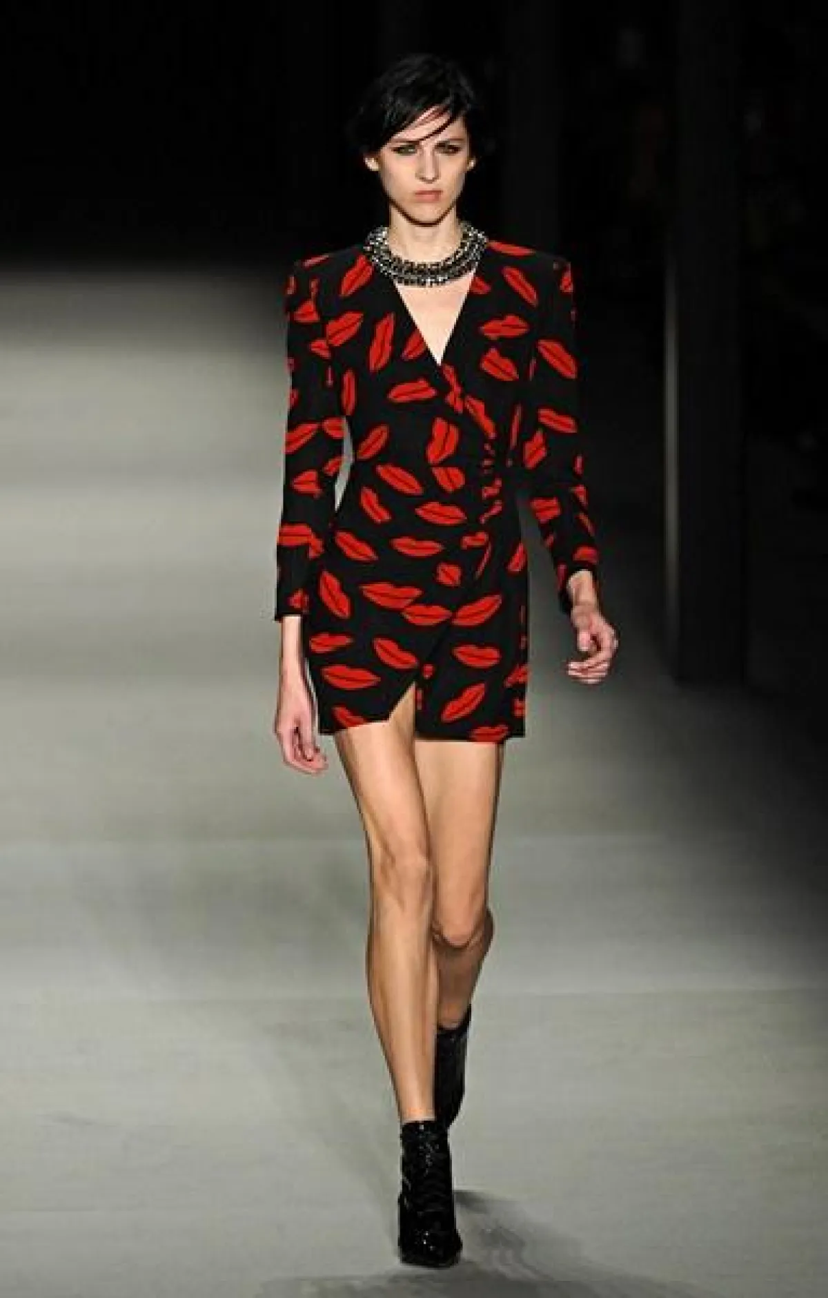 قدمت Saint Laurent مجموعة مميزة لربيع وصيف 2014 في أسبوع الموضة في باريس تراوحت ألوانها بين الأبيض والأسود والذهبي،وتميزت المجموعة بالتنوع بين البدلات والفساتين القصيرة ذات الكتف الواحد.