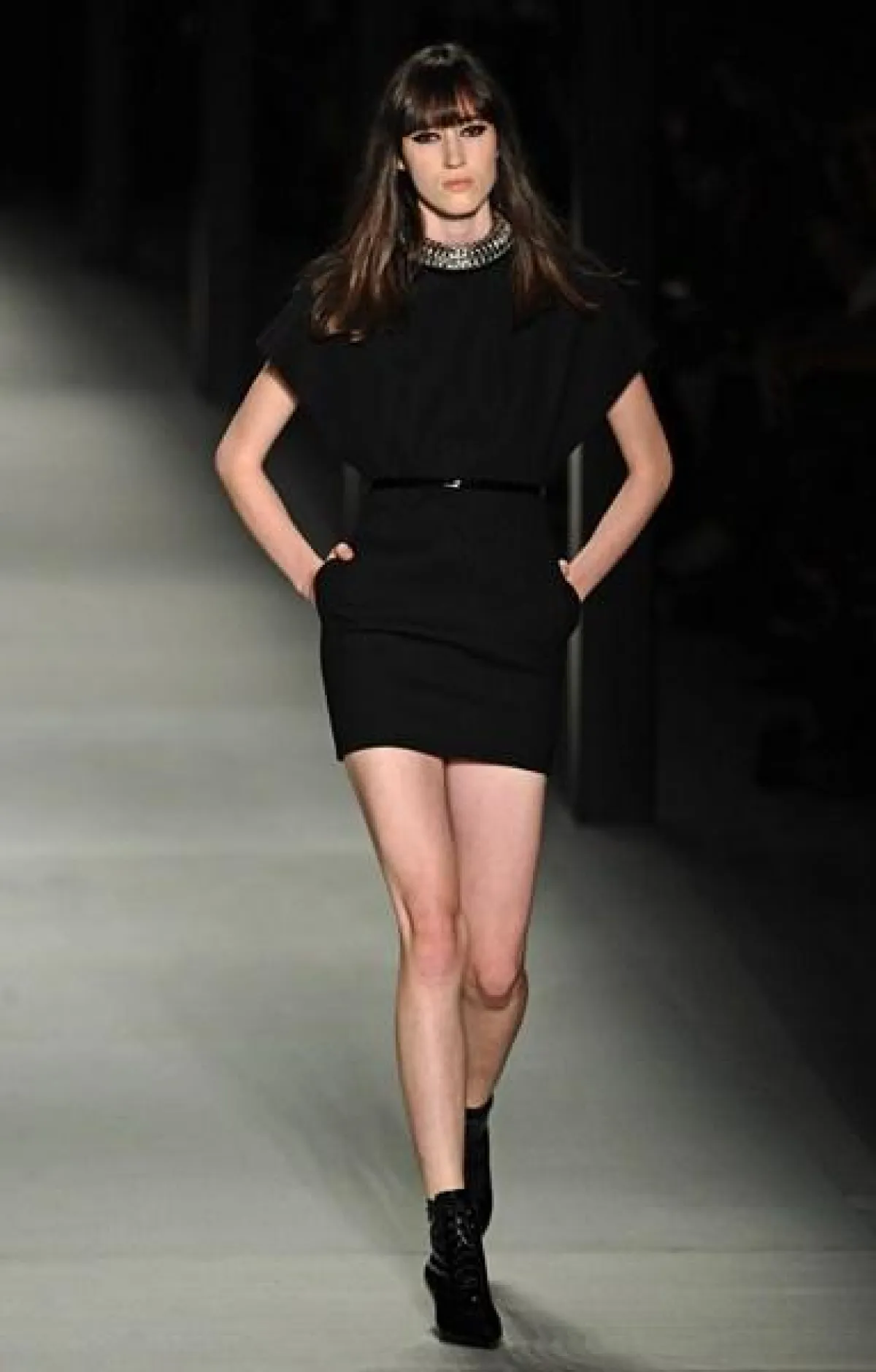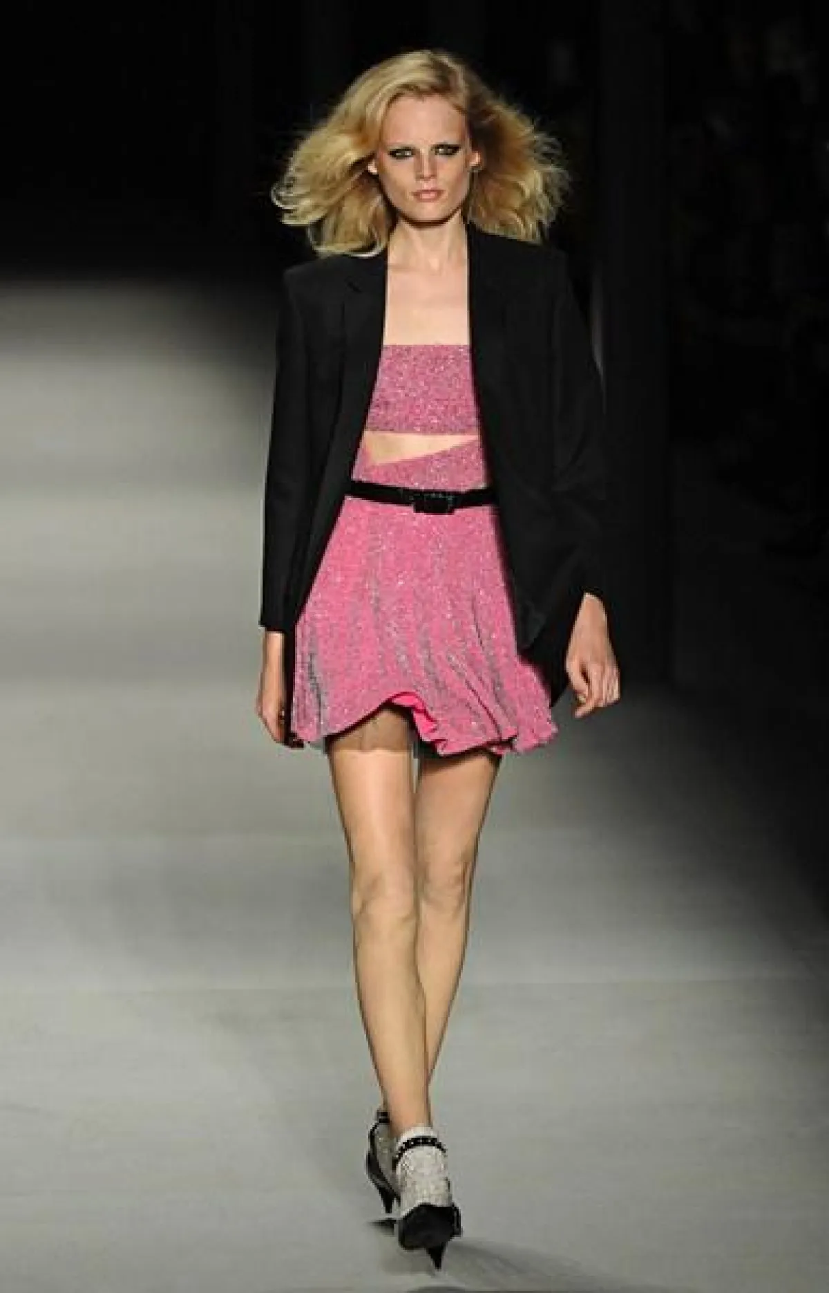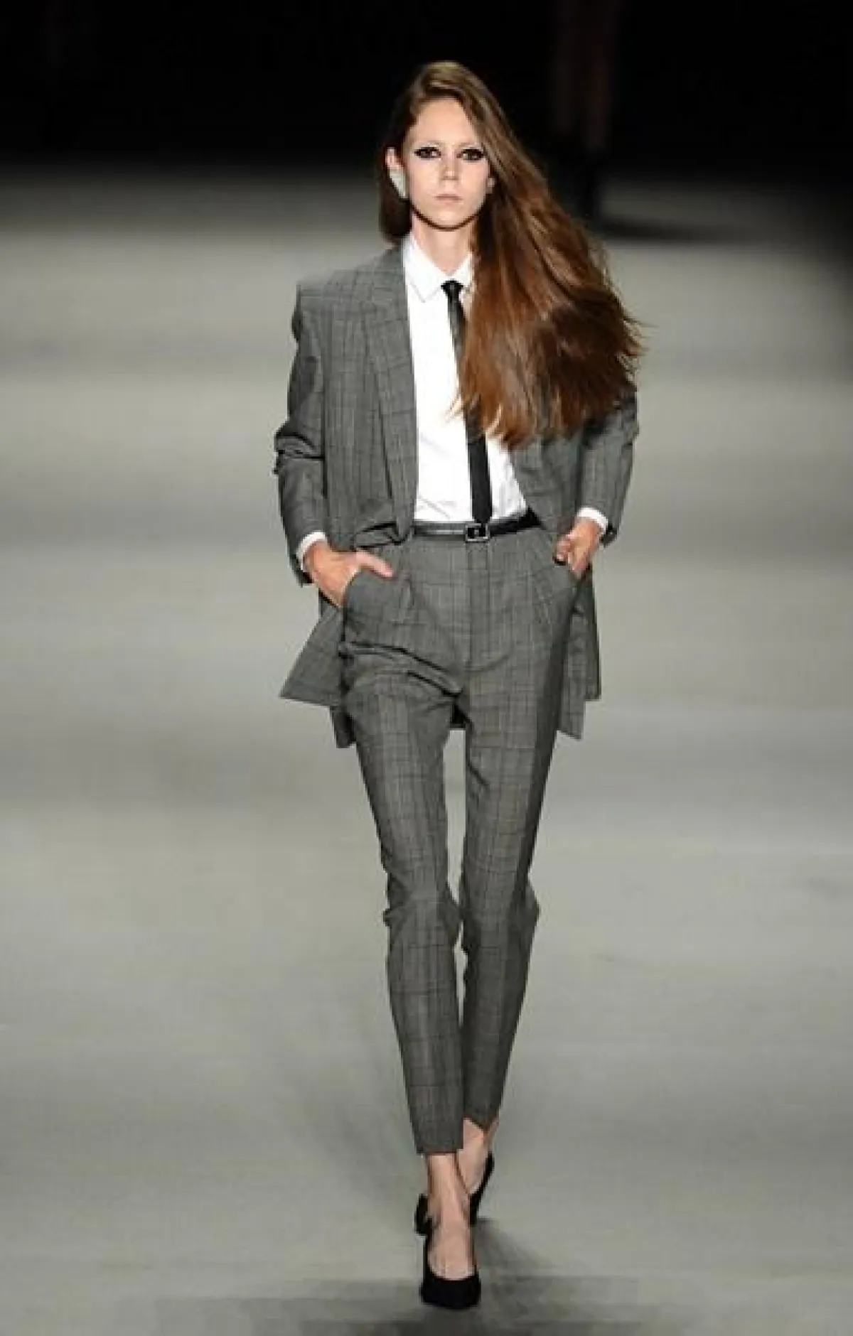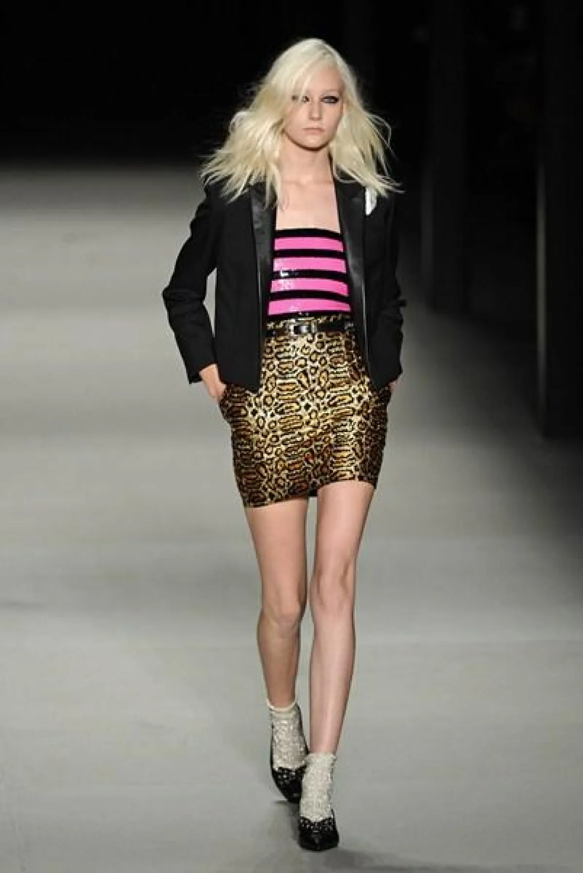قدمت Saint Laurent مجموعة مميزة لربيع وصيف 2014 في أسبوع الموضة في باريس تراوحت ألوانها بين الأبيض والأسود والذهبي،وتميزت المجموعة بالتنوع بين البدلات والفساتين القصيرة ذات الكتف الواحد.