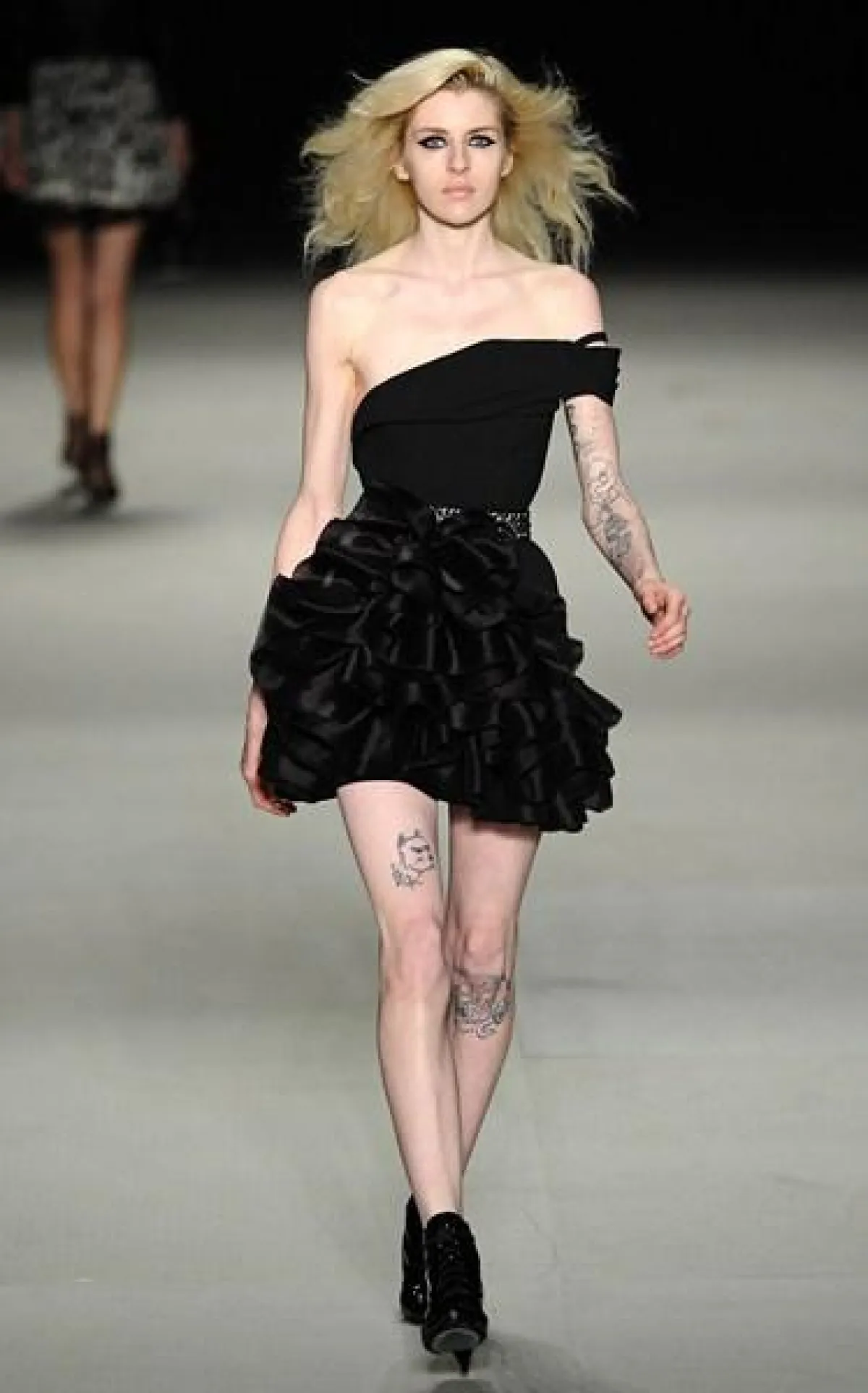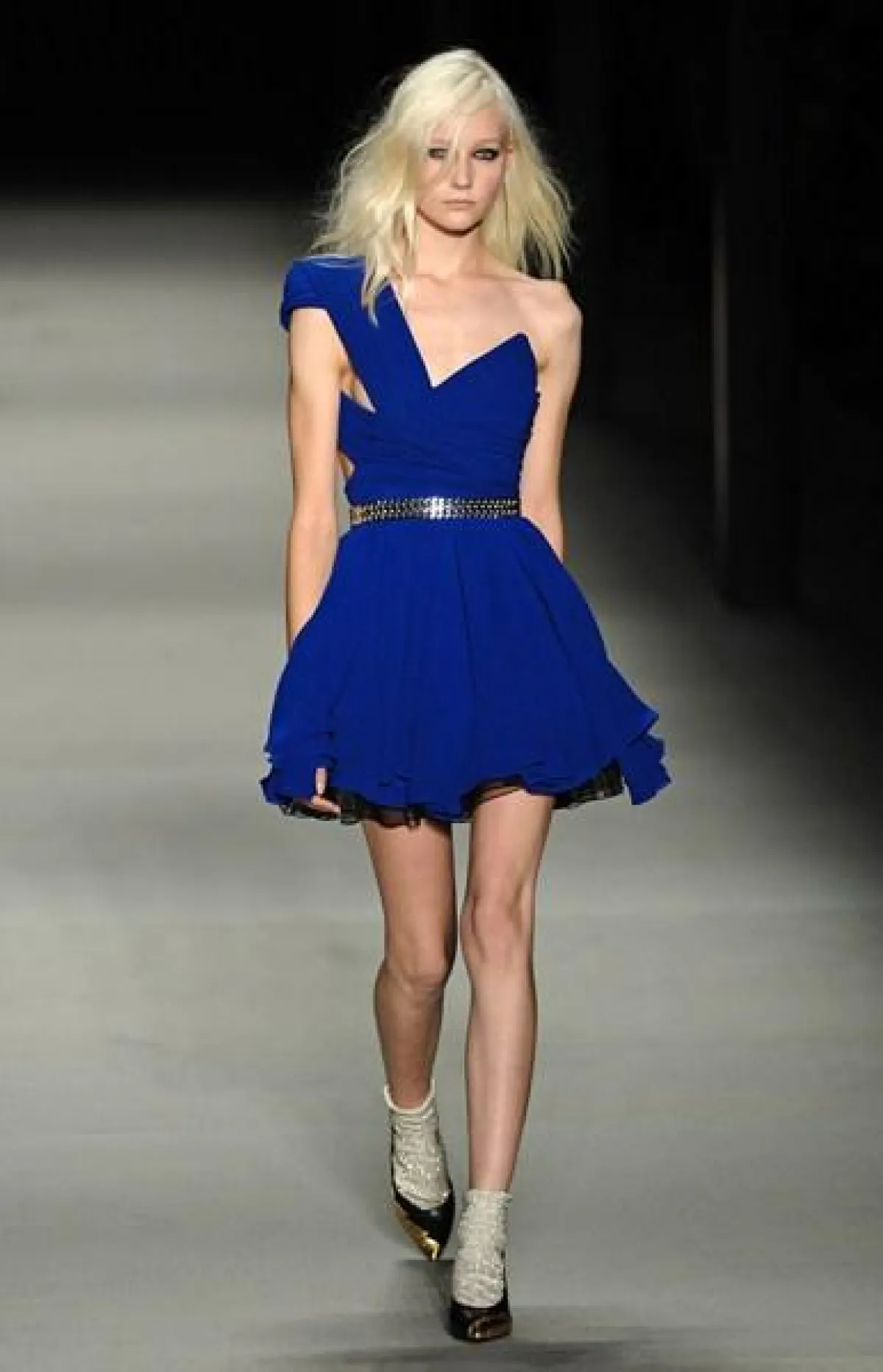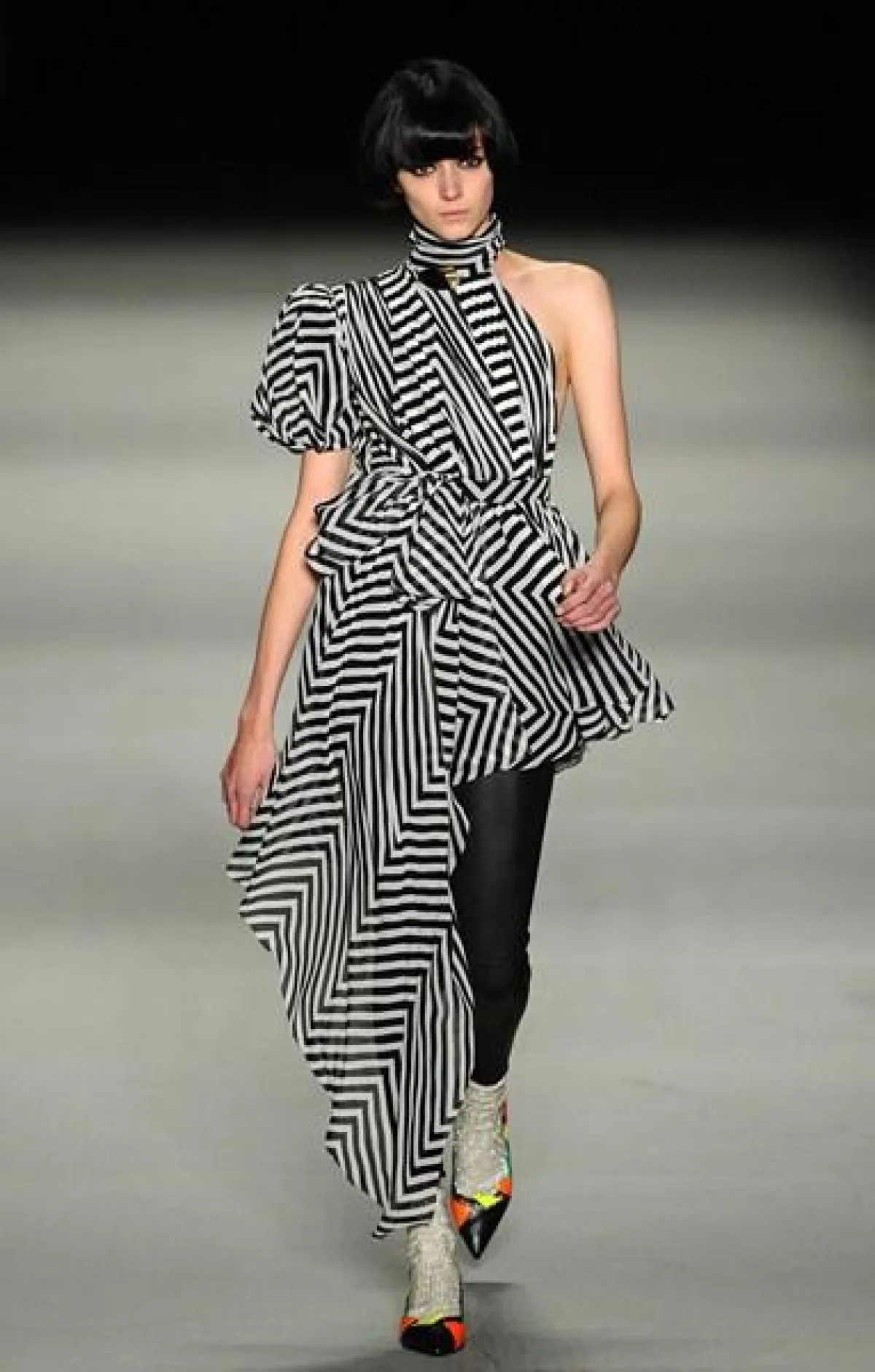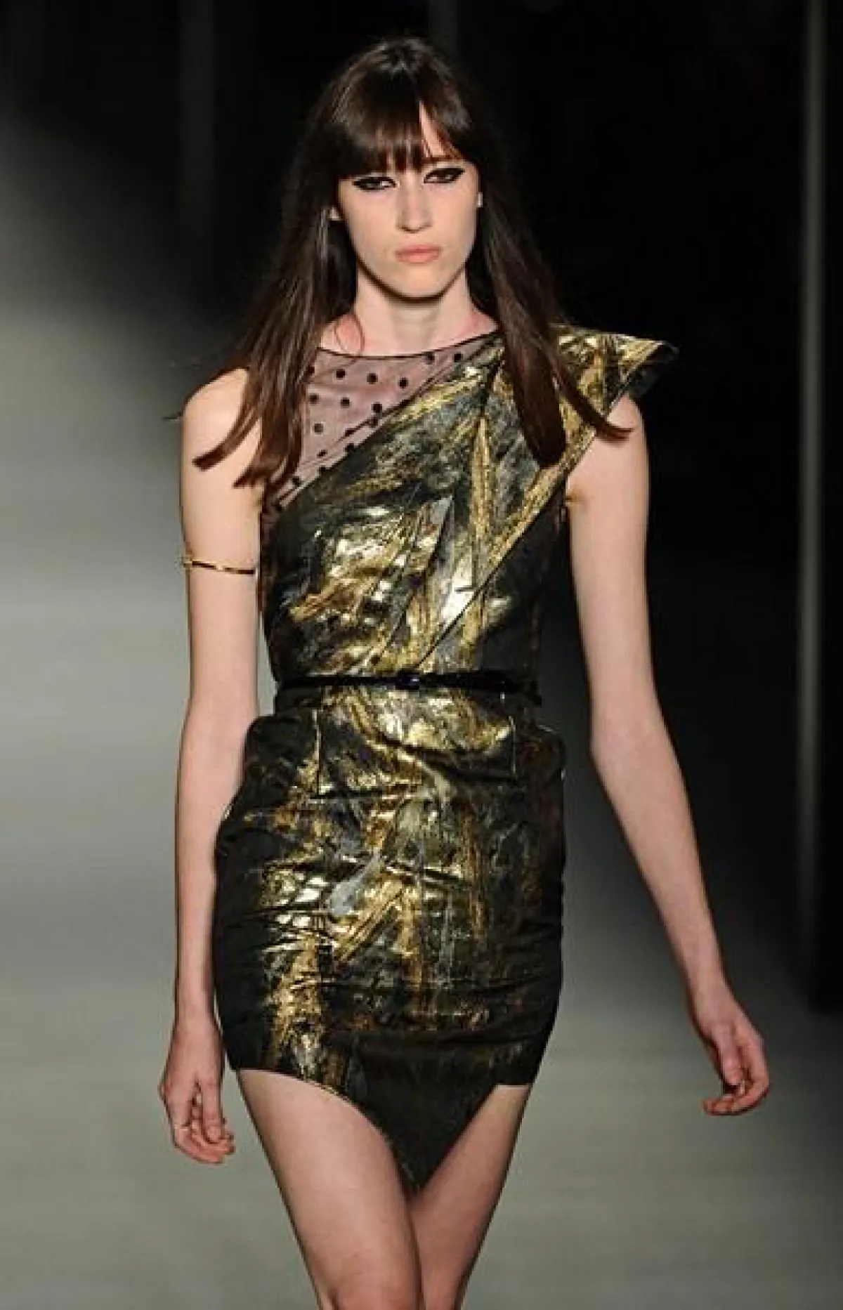 قدمت Saint Laurent مجموعة مميزة لربيع وصيف 2014 في أسبوع الموضة في باريس تراوحت ألوانها بين الأبيض والأسود والذهبي،وتميزت المجموعة بالتنوع بين البدلات والفساتين القصيرة ذات الكتف الواحد.