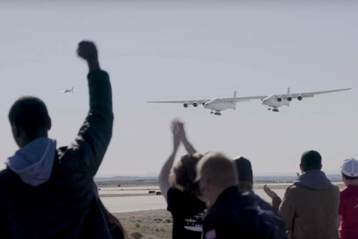 لحظة هبوط ستراتولانش بعد تحليقها الأول الناجح