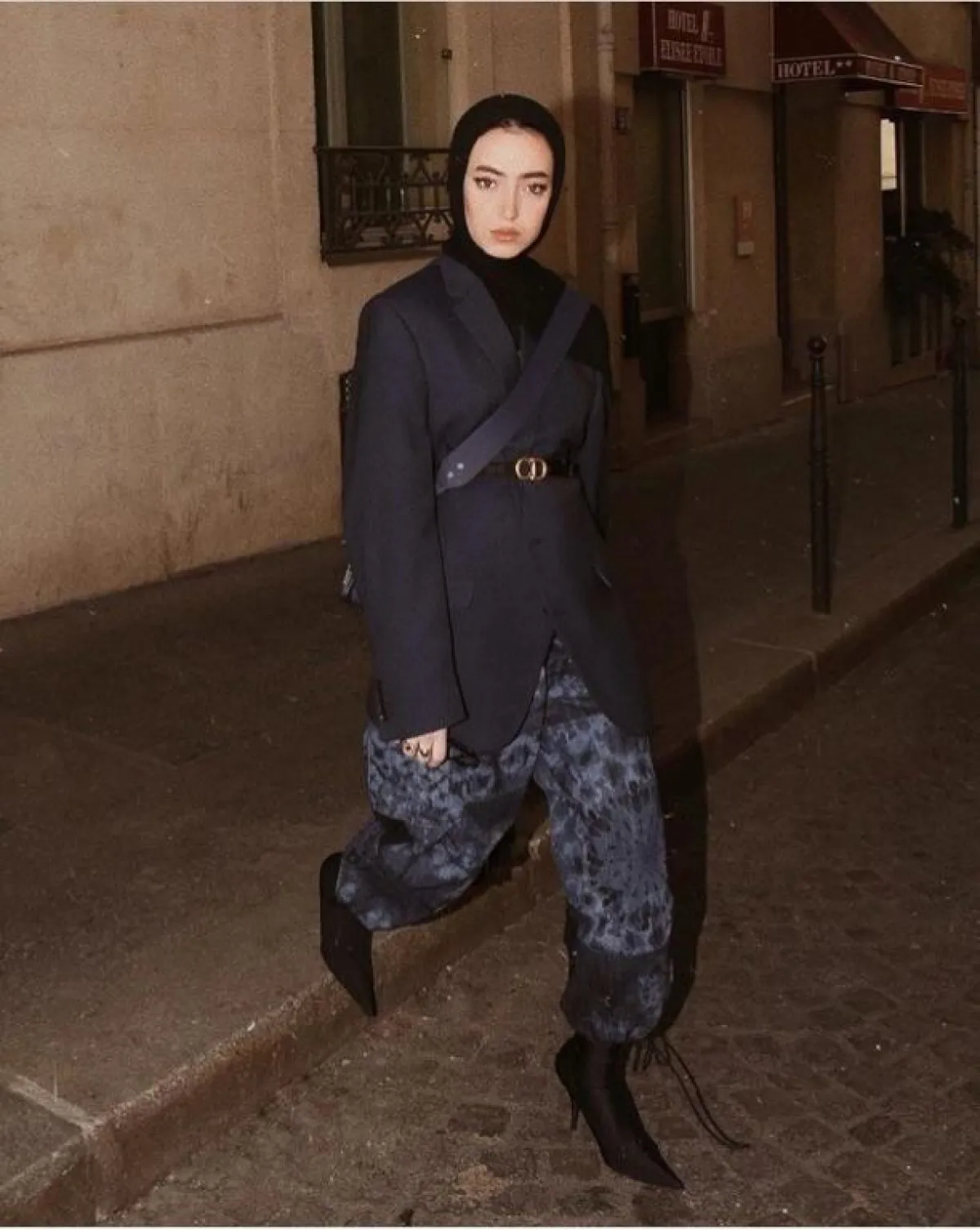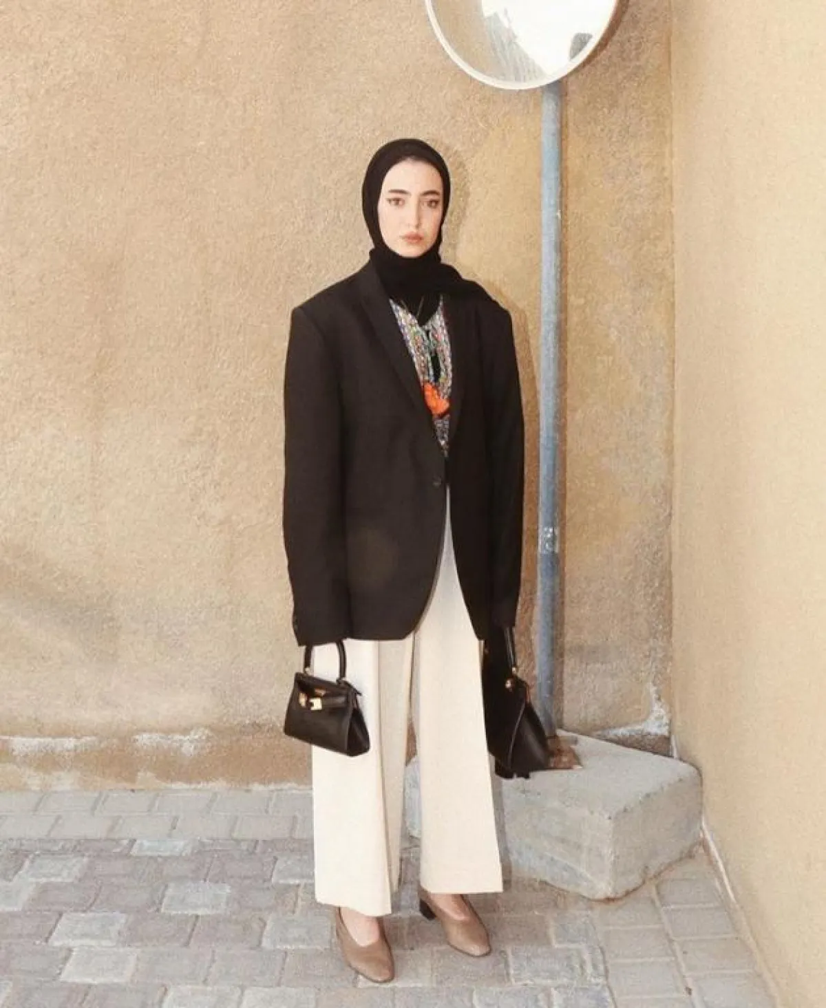 أما البناطيل الفاتحة فتنسق معها لينا الجاكيت الواسع جدًّا، قد تبدو مبهرجة للبعض، لكنها قد تسير على خطى الموضة الغربية بشكل كبير، مع الاحتفاظ بالأسلوب المحتشم.