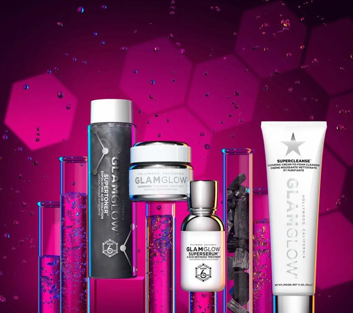 تقدّم GLAMGLOW تونير مقشّر جديد يتميز بمزيج GLAMGLOW الحصري ذو الأحماض الستة السوبر والفحم المفعّل لمسام نقية على الفور وبشرة منتعش، وهو SUPERTONER™ Exfoliating Acid Solution.