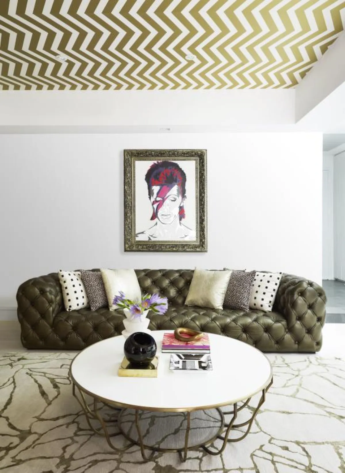 قد يتحوَّل تصميم السقف إلى نقطة الجذب الرئيسة في ديكور الغرفة، كما أنَّه يلعب دورًا رئيسًا في جعل المساحة تبدو أكثر فسحةً أو أكثر علوًّا. وتجدر الإشارة إلى أنَّ موضة الأسقف الملوَّنة أو المزخرفة رائجة أخيرًا.