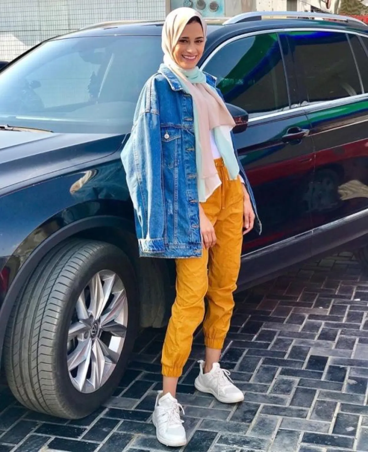 أو يمكنكِ اعتماده مع البناطيل عالية الخصر الرياضية، كالبنطلون من المدونة من منة السوني، مع توب وسنيكر أبيض، ليكتمل اللوك الكاجوال مع الألوان الحيادية، التي كسرتها بقبعة البيريه الحمراء مع الحجاب.