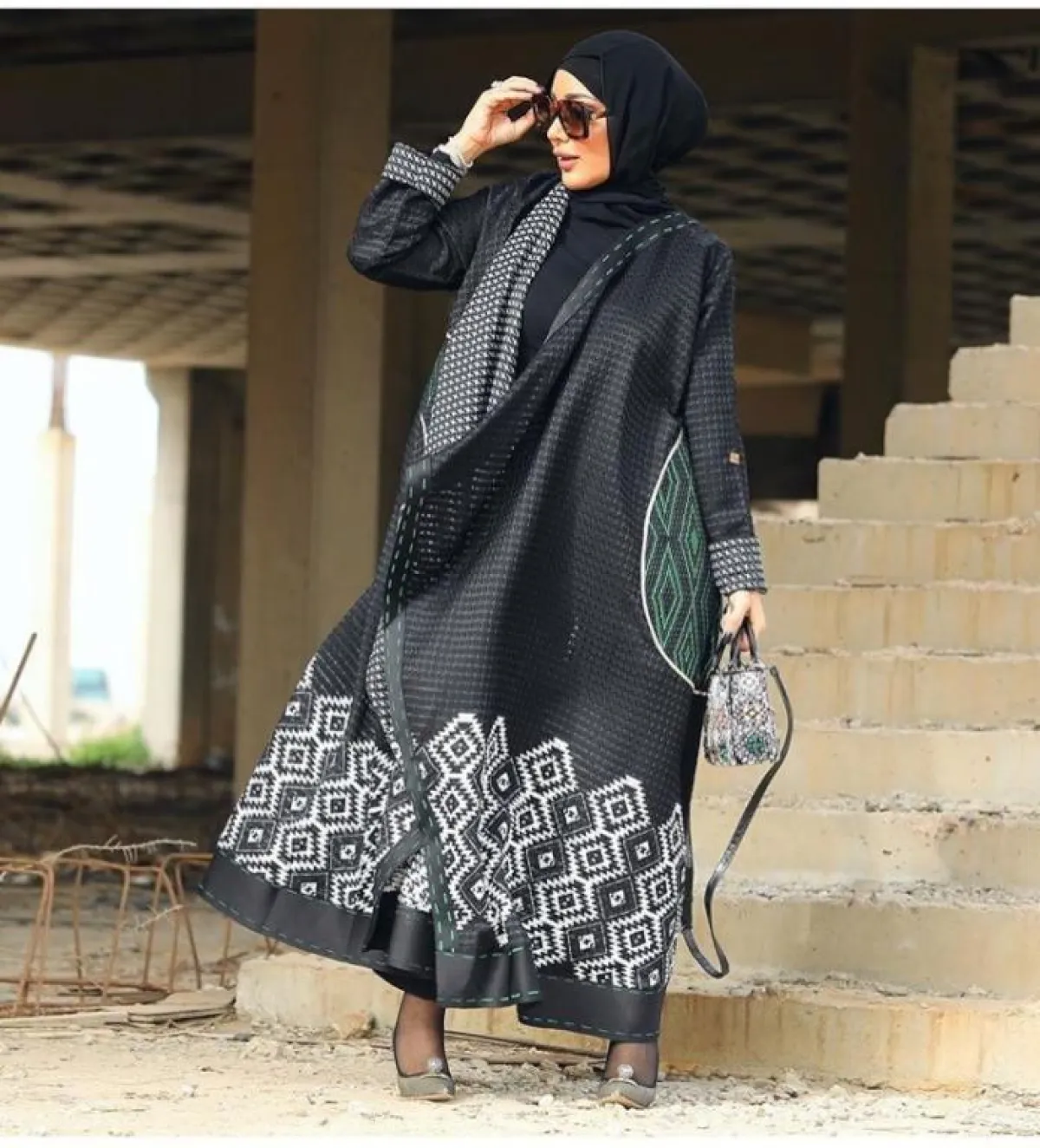 ظهرت الفاشينيستا حنين الصيفي بعباية باللون الأسود مع أكمام واسعة، بخامة الشيفون الحريرية، والتي سنجدها كثيرًا بشهر رمضان بموديلات العبايات، لفتنا الإطار باللون الأخضر للعباية، الذي أضاف أناقة وجمالًا للتصميم، مناسِبة لكل أجسام الصبايا مع تصميمها الواسع، ستكون رفيقتكِ طوال النهار.