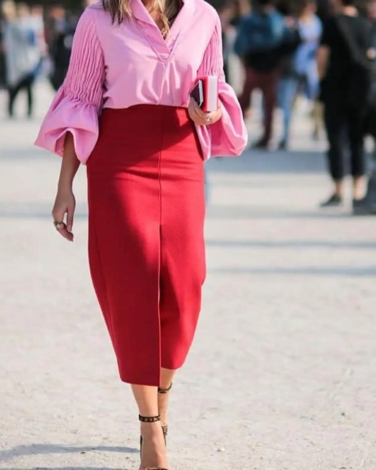 ظهرت مزيج الأحمر مع الوردي خلال موضة الشارع التي شاهدناها على هامش أسابيع الموضة، حيث ظهرت البنطلونات الحمراء بأرجل فضفاضة مع القمصان النسائية بدرجات الوردي، كذلك شاهدنا العكس.