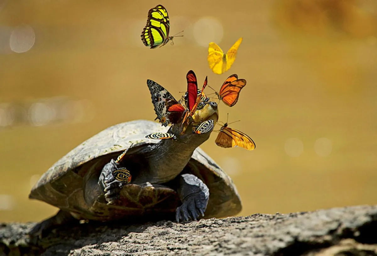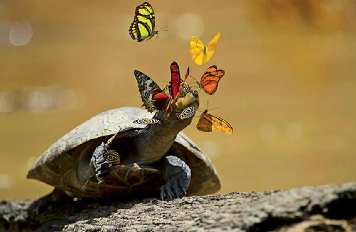 إذ تجد الفراشات في دموع السلاحف" مشروبها المثالي" لكونها غنية بالصوديوم، فعلى الرغم من أن غابات الأمازون تحتوي على الكثير من الماء، إلا أن الفراشات تبحث عن الصوديوم من أجل البقاء.