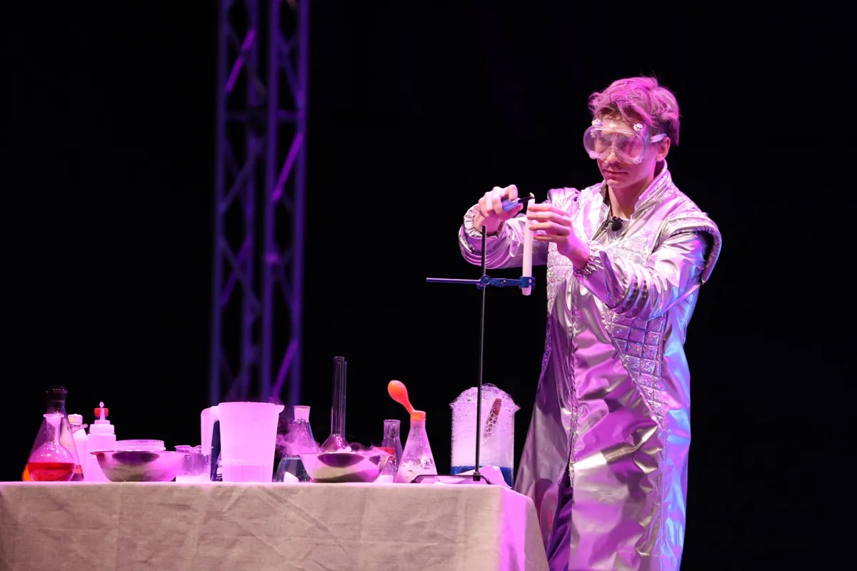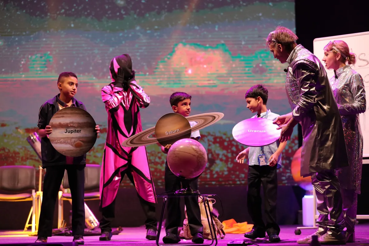 عروض علمية تفاعلية، وتجارب شيقة تستضيفها يومياً خشبة مسرح مهرجان الشارقة القرائي للطفل، الذي تقام حالياً فعاليات دورته الـ 11 في مركز إكسبو الشارقة.