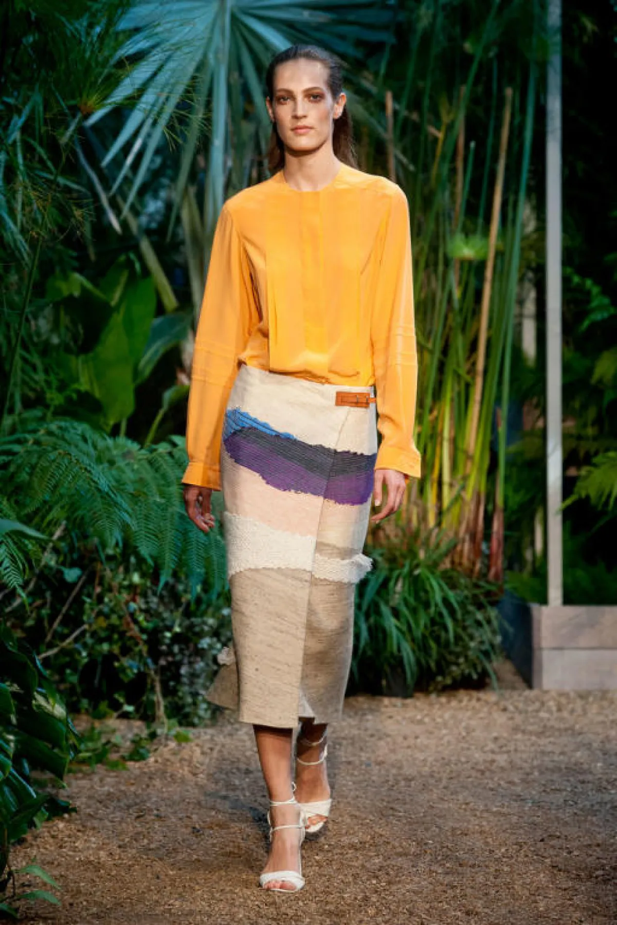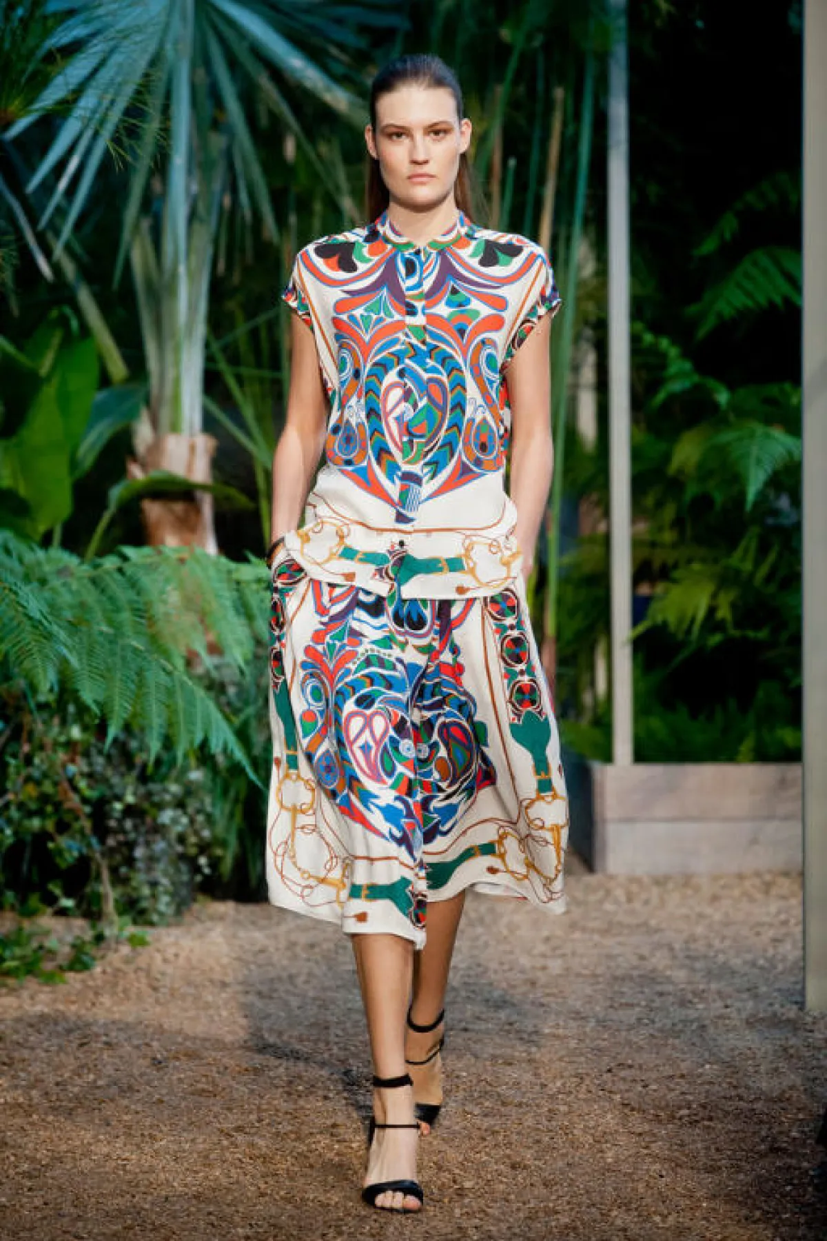 لوحة ربيعية رائعة مليئة بالحياة والحيوية، قدّمتها دار Hermes في عرض مجموعتها لربيع وصيف 2014، في أسبوع الموضة في باريس.