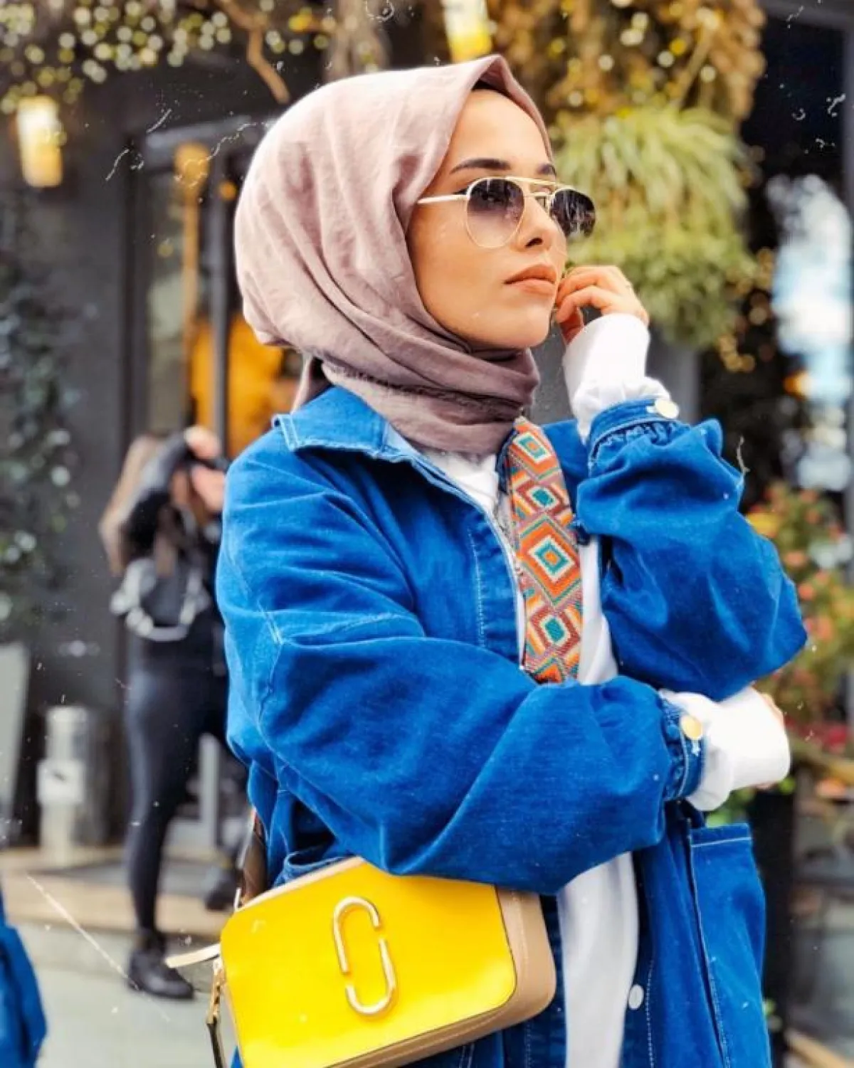 لقد استطاعت الفاشينيستا التركية AYŞENUR YILDIZ تنسيق الحقيبة الصفرا مع الحجاب بشكل لا مثيل له، فاختارتها القطعة الأساسية لإطلالتها باللون الزيتي، وكذلك نسقتها مع اللون الكحلي والبنطلون الأبيض، وتألقت بها مع القميص الطويل الجينز المتفوح، هذا إلى جانب تألقها بها مع الإطلالة الكاملة باللون الرمادي.