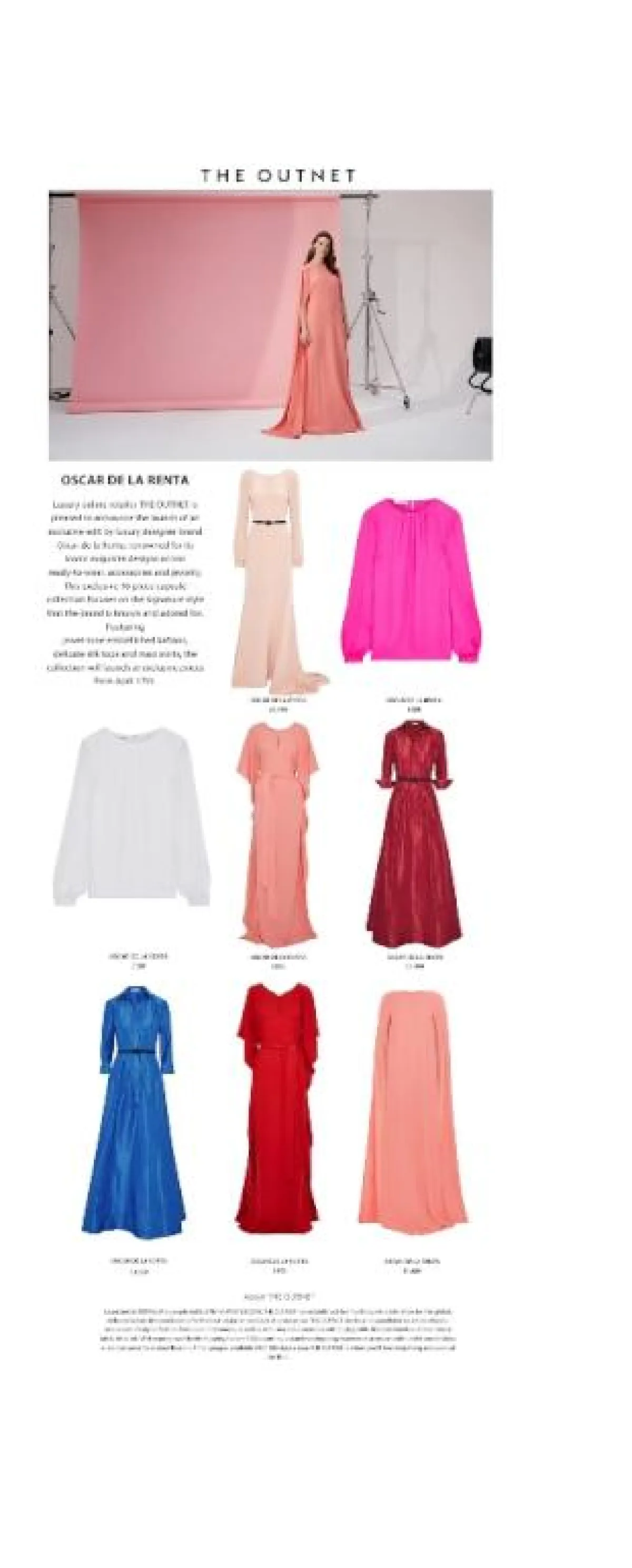 أطلق موقع التسوّق الإلكتروني THE OUTNET، مجموعة كبسولة حصرية لعلامة أوسكار دي لا رينتا Oscar de la Renta المعروفة بتصاميمها الأيقونيّة من ملابس جاهزة وإكسسوارات ومجوهرات.