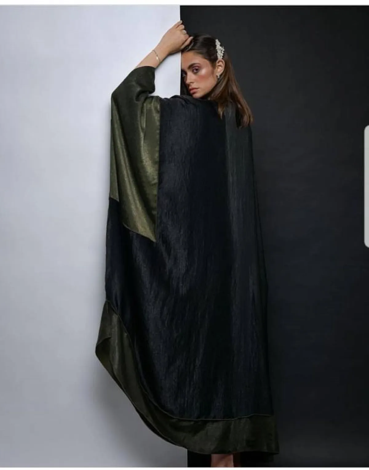 اللوك الكلاسيكي المستوحى من الأجواء الشتوية ولكن مع خامات خفيفة وعصرية كالعبايه من Abaya Gossip عبايه غوسيب، مناسبة أكثر لأجواء العمل الرسمية، لتمنحكِ لمسة جادة وعصرية في الوقت نفسه، بخاصة إذا نسقتها مع لفات حجاب باللون الأسود أو الكحلي مثل ألوان العباية.