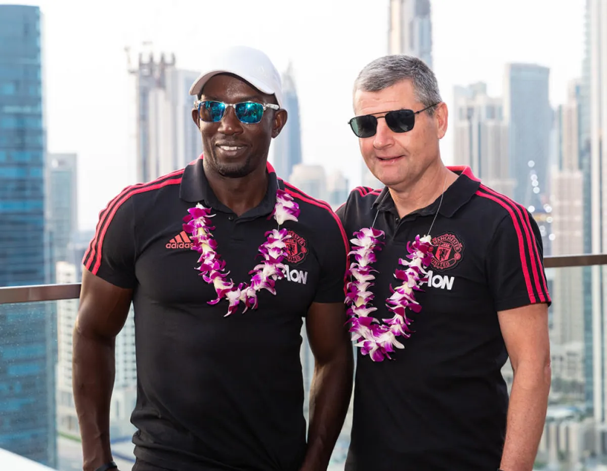 زار نخبة من سفراء مانشستر يونايتد الإنجليزي دولة الإمارات لمقابلة الجماهير والتعرف عن قرب على الثقافة المحلية، وتقديم رؤيتهم وتحليلاتهم عن كرة القدم الحالية والمستقبلية.