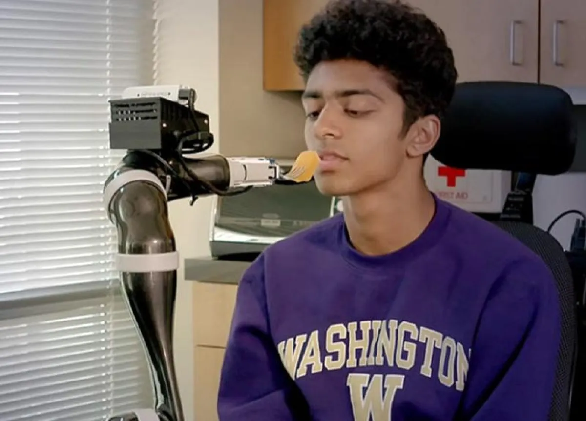يبدو أن محاولات المخترعين والعلماء في «أنسنة» الآلات والأدمغة الصناعية تسير بخطوات ناجحة نحو مستقبل أفضل لفئة ذوي الاحتياجات الخاصة التي تعاني من الوحدة، وارتفاع كلفة المرافقين براتب شهري وسواه من مصاعب الحياة جراء إعاقاتهم الجسدية الشديدة؛ إذ نجح فريق من الباحثين في تطوير روبوت يستطيع مساعدة ذوي الاحتياجات الخاصة على تناول الطعام بطريقة لطيفة.