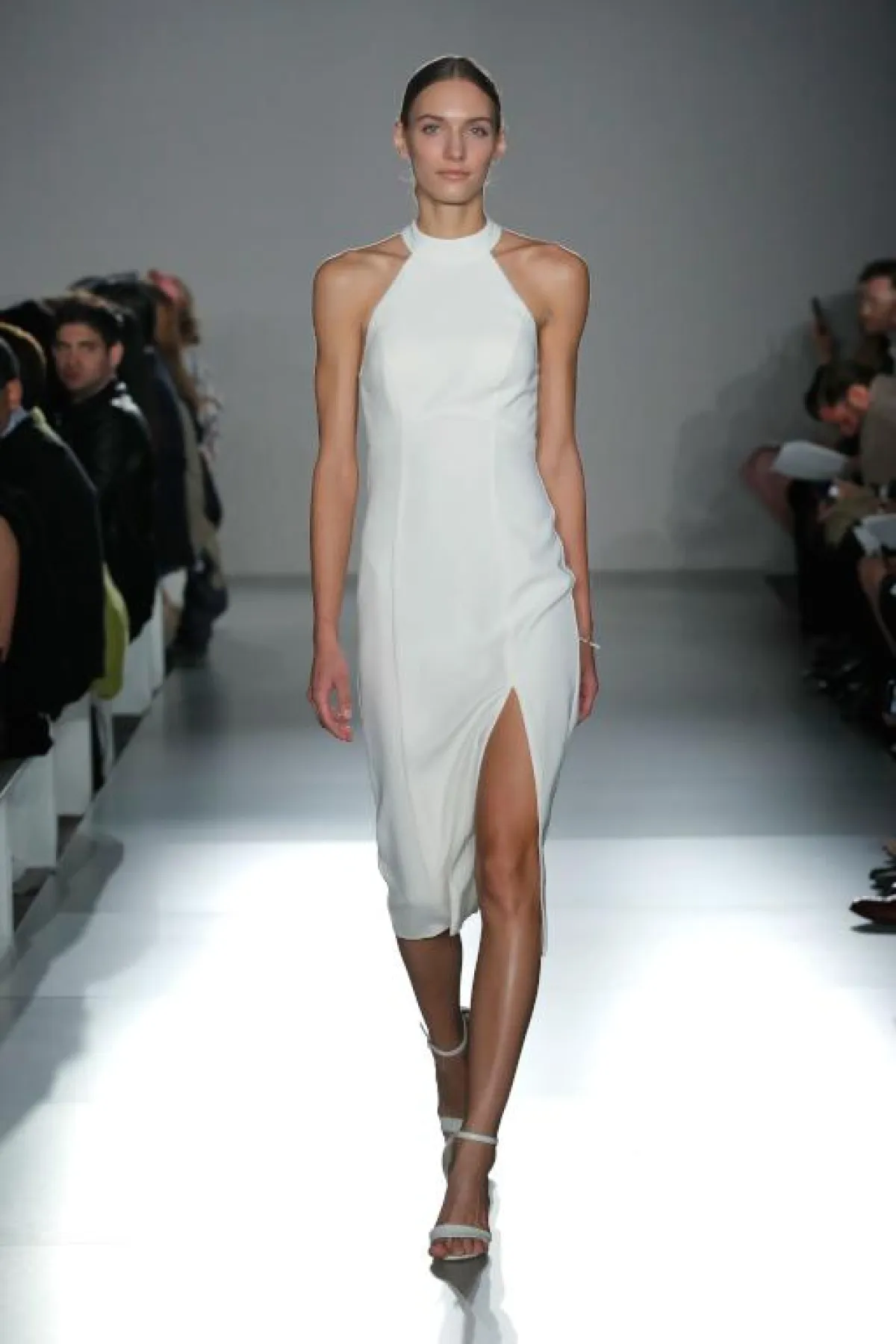 ما بين فساتين الزفاف القصيرة بالقصّة العمودية وقصّة الـA Line، تنوعت فساتين زفاف Amsale التي اتسمت بالبساطة، واستخدمت أقمشة الستان والشيفون.