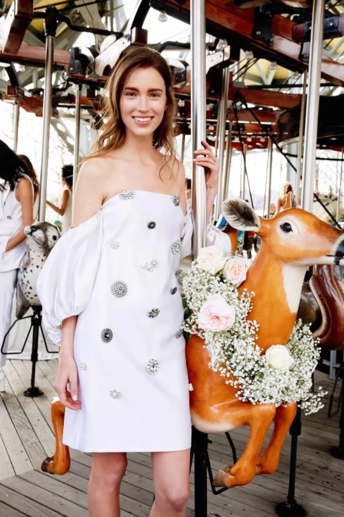 كما قدمت بعض الماركات فساتين زفاف قصيرة بأكتاف منسدلة Off Shoulder، مثل فساتين زفاف ليلا روز Lela Rose، وتاداشي شوجي Tadashi Shoji.