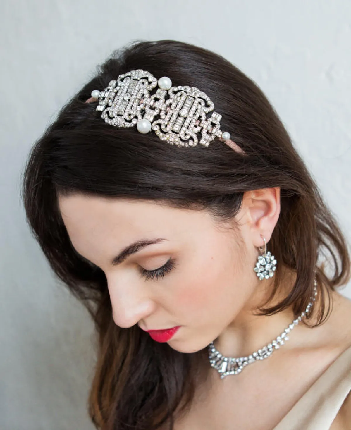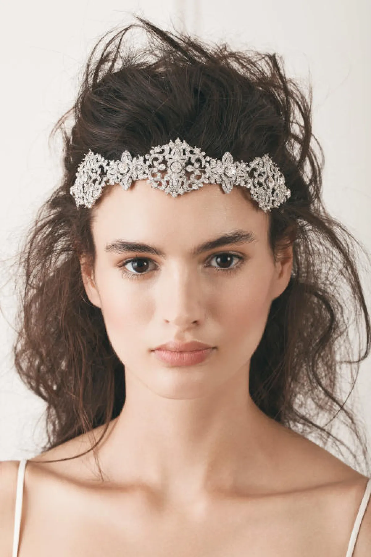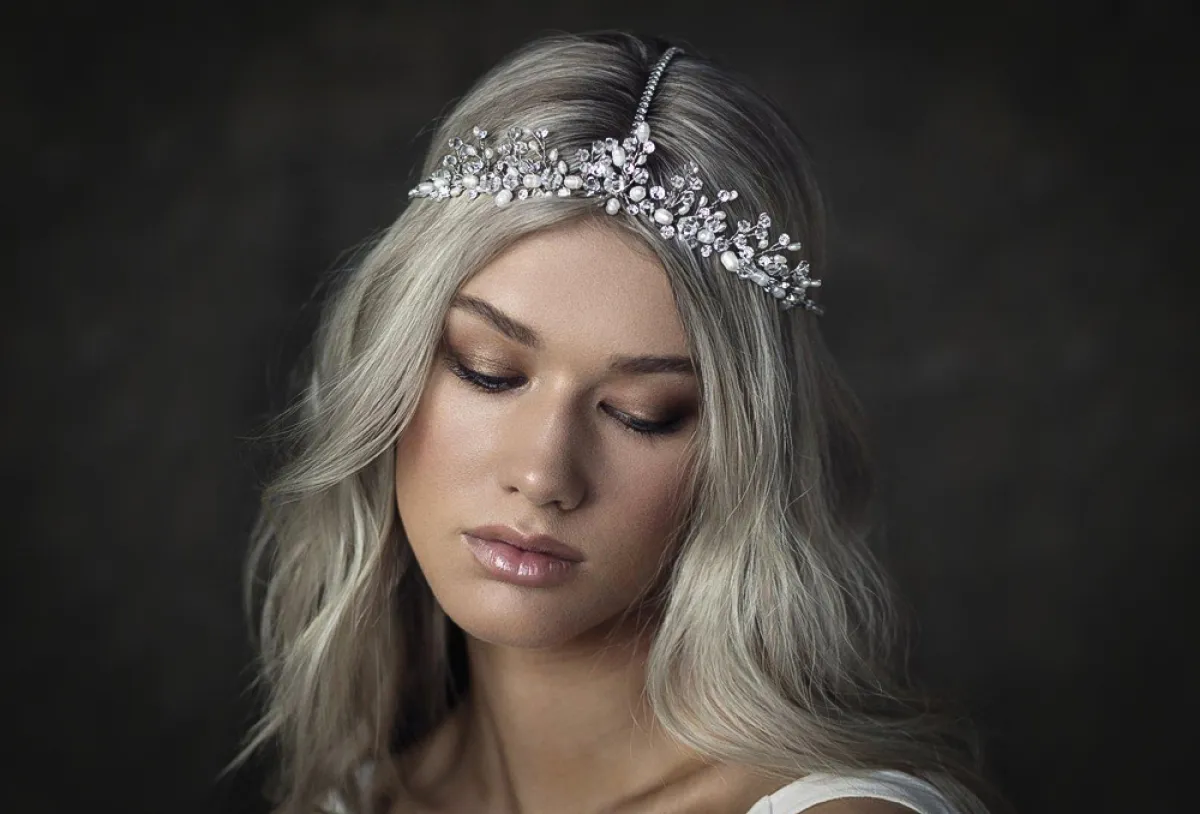 لفتنا كذلك الهيد بيس المستوحاة من تصميم التاج، لكنها أكثر انسيابية، وتمنحكِ "لوك" ملكيًّا مع فستان زفافكِ من خامة الستان، وتصميم السندريلا.