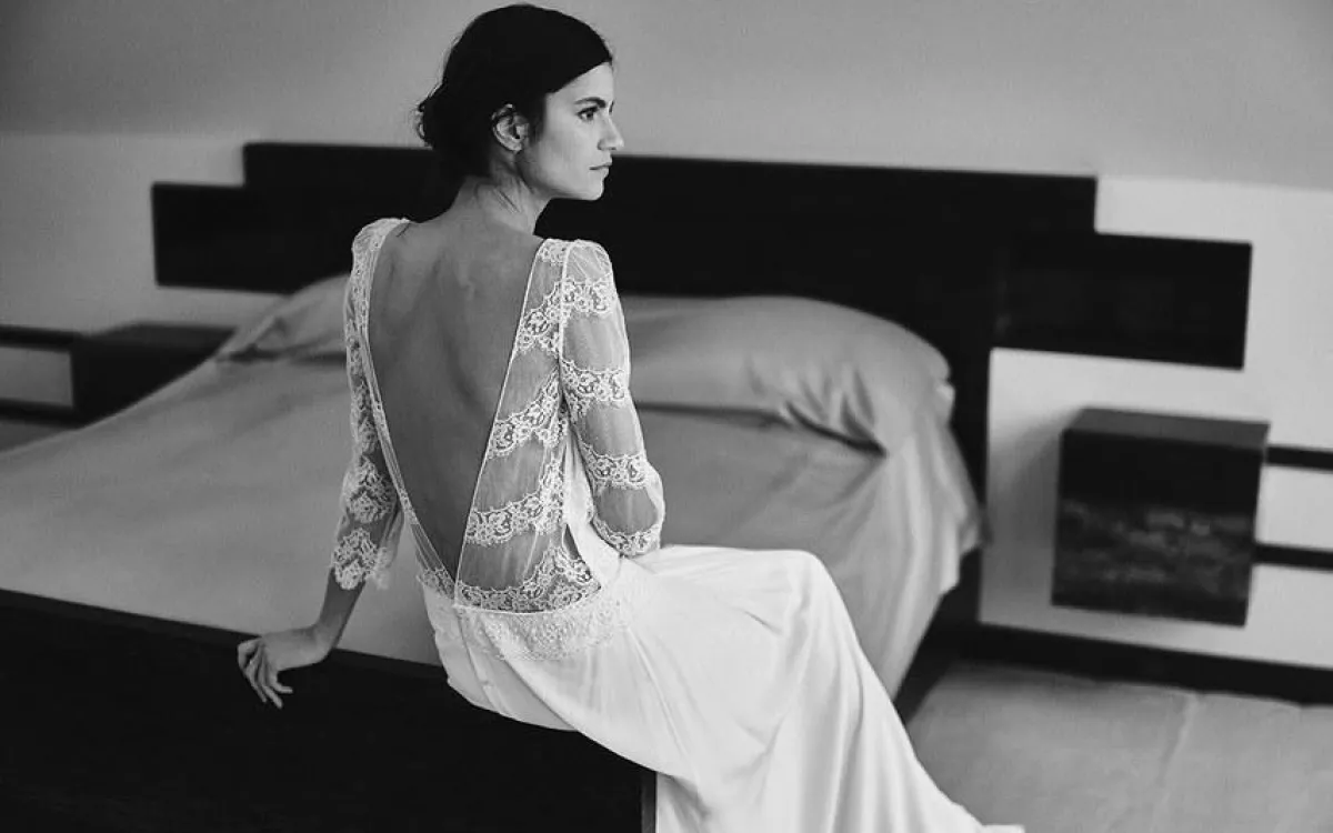 الفساتين المفتوحة من الظهر، من التصميمات التي تستهوي الكثير من الصبايا، كهذا الموديل من Laure de Sagazan لورا دو ساغازان، ويُعتبر هذا التصميم من أكثر فساتين الزفاف الفرنسية المفضلة للصبايا.