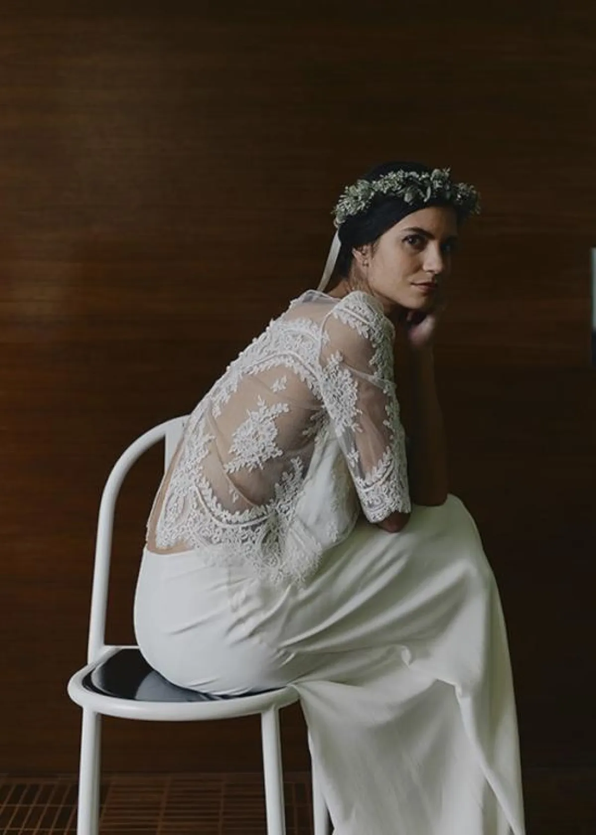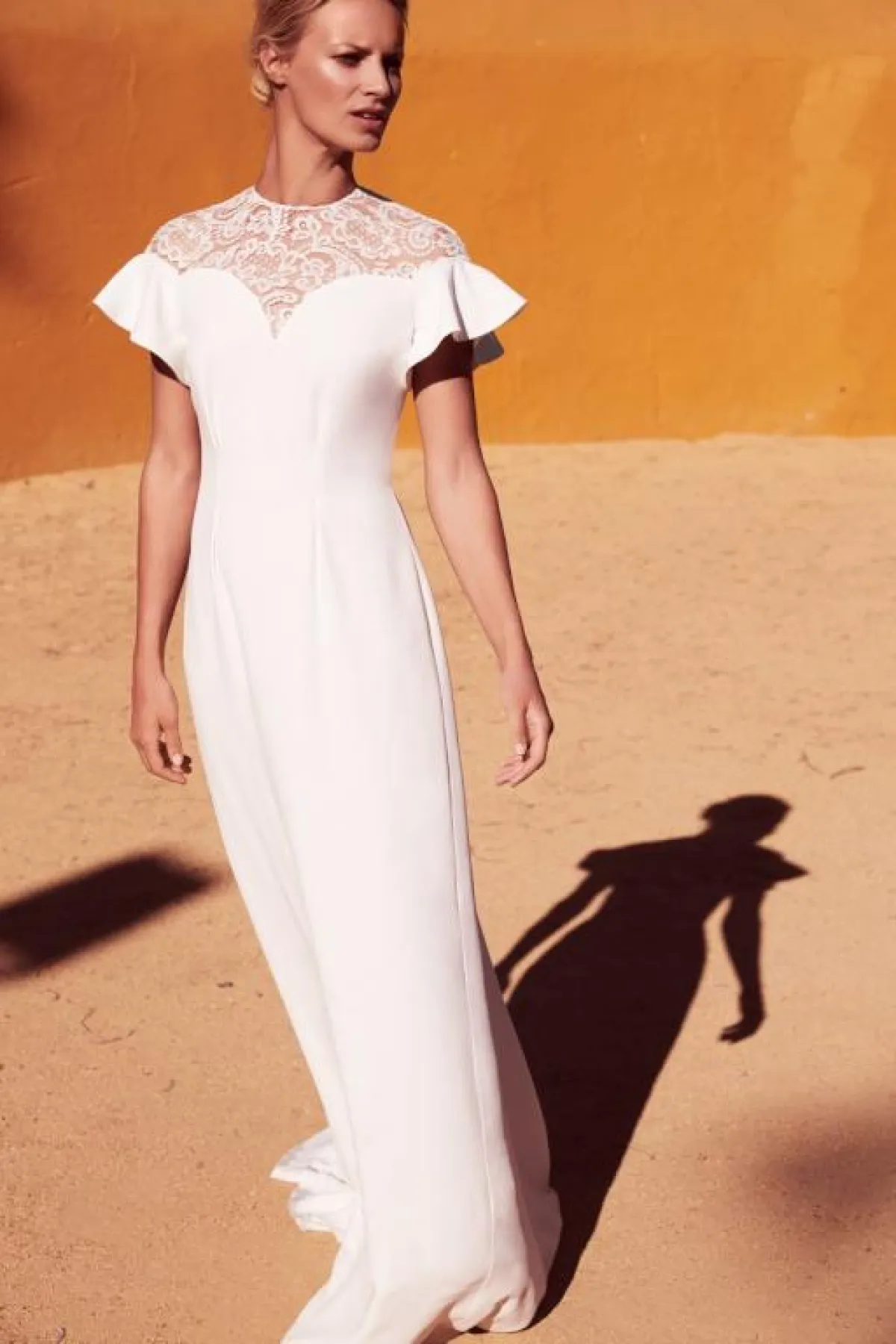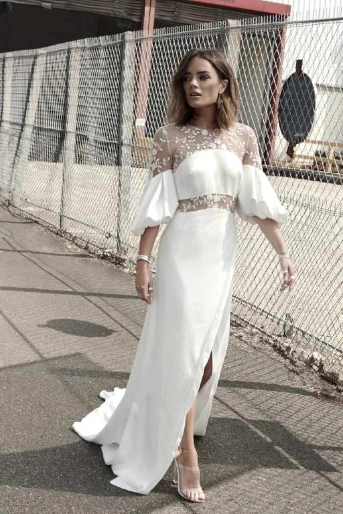 إذا كان حفلكِ بسيطًا، أو تريدين ارتداء أكثر من فستان بيوم أحلامِك، هذا الفستان من Margaux Tardits مارغوت دراتيتس، سيكون أنيقًا مع الدانتيل الشفاف، يمكنكِ معه وضع اكسسوار الشعر، المرصع بالأحجار الكريستالية اللامعة.