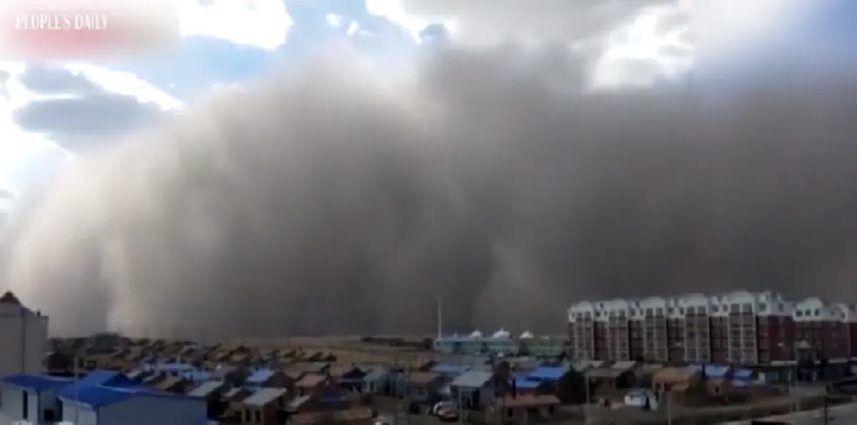 ونشرت وسائل إعلام عالمية مقاطع فيديو لمروعة للعاصفة الرملية التي ابتلعت مدينة يو باراغ رايت بانر في منغوليا الداخلية شمالي الصين، ودمرت أعمدة الإنارة والإشارات المرورية، وأغرقت المدينة بالكامل بالرمال في ثوان معدودة..