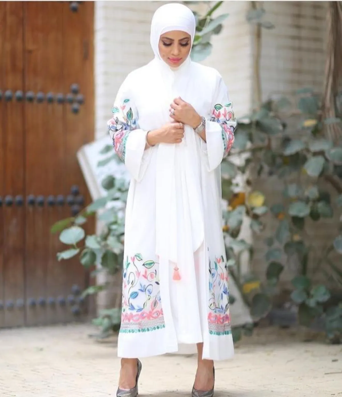 العباية البيضاء مع الخامات الخفيفة مثل القطن والكتان، ستكون صديقتنا هذا الموسم بالطقس الحار، بالإضافة إلى أنّ الأبيض أحد ملوك الألوان في صيف 2019، كالعباية مع رسومات الورود الملونة وفروع الاشجار، نسقيها مع شوز رياضي باللون الأبيض، وشنطة من الخوص، حتى تبدي أكثر بساطة ومتناغمة مع الطبيعة من دون تكلف.