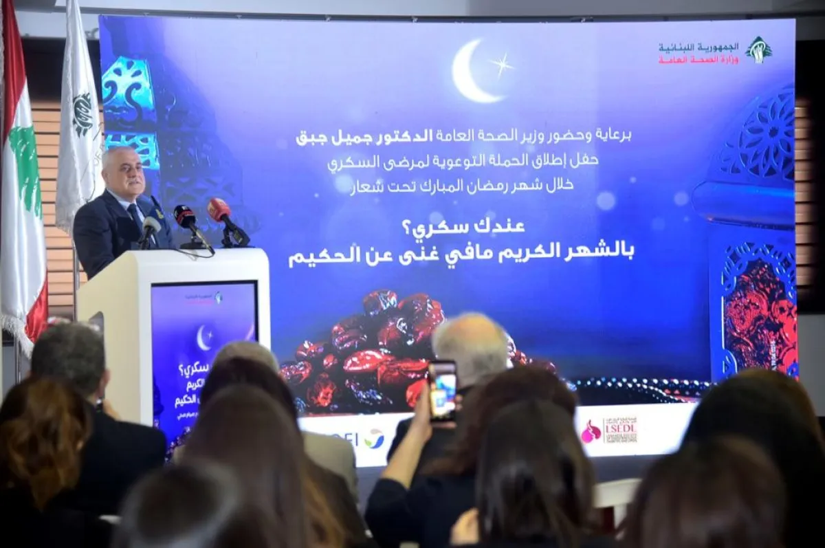 تحت شعار "عندك سكري؟ بالشهر الكريم ما في غنى عن الحكيم"، أطلقت وزارة الصحة العامة حملة توجيهية لمرضى السكري خلال شهر رمضان، برعاية وحضور وزير الصحة العامة الدكتور جميل جبق، بالتعاون مع الجمعية اللبنانية لأمراض الغدد الصم والسكري والدهون (LSEDL)، وشركتي "سانوفي" و"MSD"، بهدف تثقيف المرضى الذين يعانون مرض السكري، حول كيفية الصوم الآمن خلال الشهر الفضيل عبر تحديد استراتيجيات تقلّل عوامل الخطر.