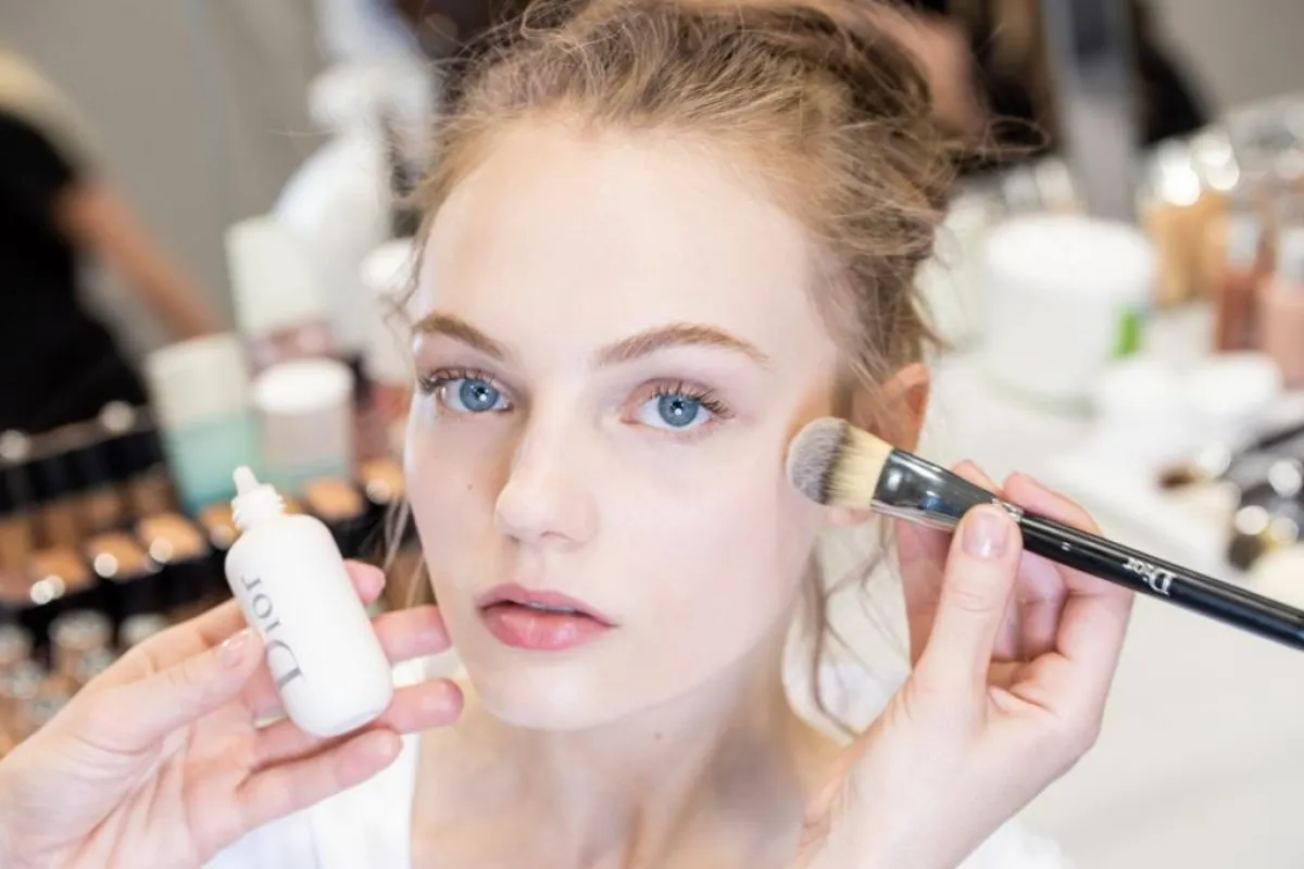 اعتمد بيتر فيليبس وكالعادة على منح العارضة بشرة صافية مثالية : " إذ طبّق مستحضر ديور الجديدDIOR BACKSTAGE FACE & BODY PRIMER، الذي يمنحح المرأة لمعاناً. بعد ذلك، استخدم مجموعة كريم أساس DIOR BACKSTAGE FACE AND BODY FOUNDATION، والتي تضم 40 ظلّاً مختلفاً. تركيبة هذا المستحضر خفيفة ومقاومة للماء وتمنحك لمسة نهائية مثالية ومنعشة. بعد ذلك، تم وضع طبقة خفيفة من علبة التوهّجDIOR BACKSTAGE GLOW FACE PALETTE 001 UNIVERSAL في المناطق التي تثير الضوء. وكلمسة نهائية، استخدمتFLASH LUMINIZER ولمسات صغيرة من خافي العيوب DIOR UNDERCOVER CONCEALER."