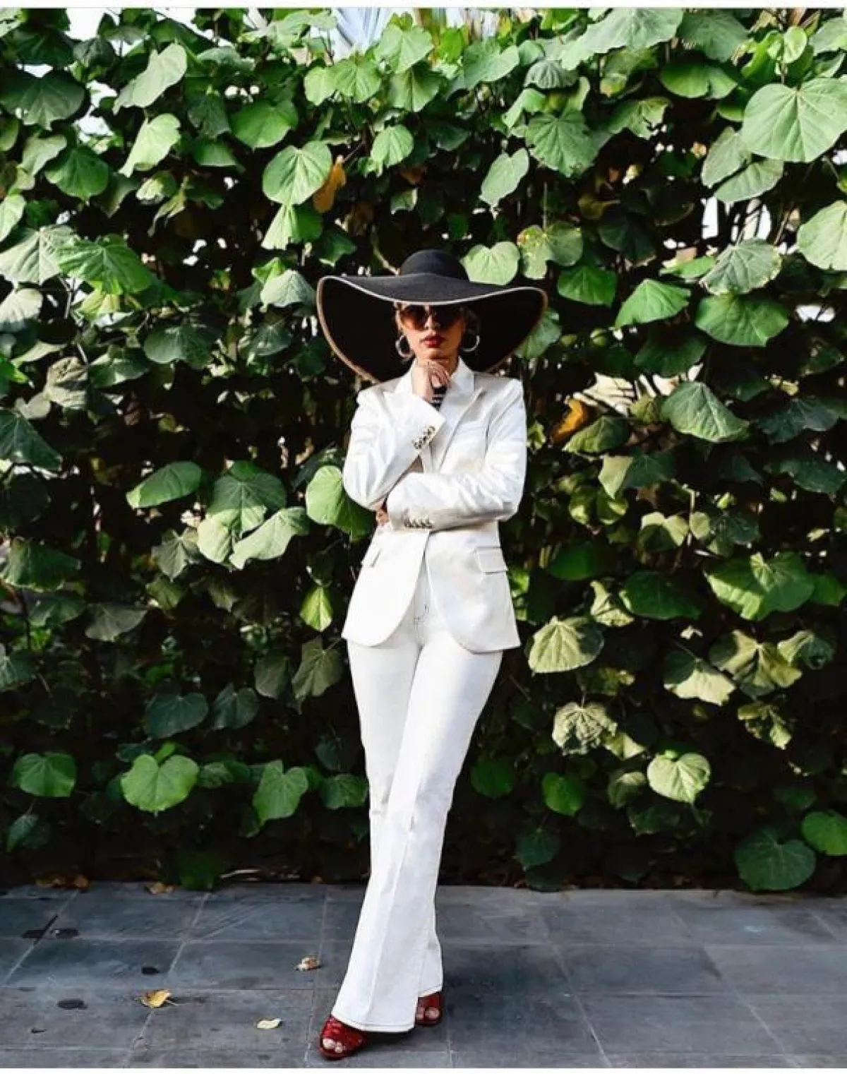 البدلة بالستايل الكلاسيكي المستوحى من فترة السبعينيات، من التصاميم العصرية التي استطاعت صوفيا جودسون ارتدائها بشكل رائع، خاصة عندما نسقت معها القبعة النسائية كبيرة الحجم فوق حجابها، وأقراط الاذن الدائرية كإطلالة مترفة من الدرجة الأولى.