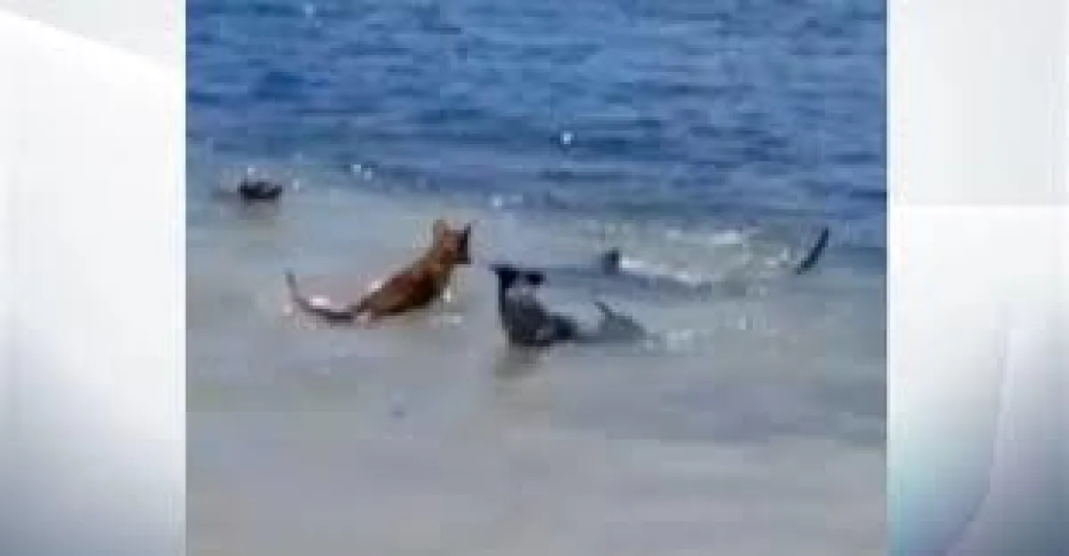 خاضت مجموعة من الكلاب معركة ساخنة مع سرب من أسماك القرش الكبيرة عند أحد شواطئ أستراليا.