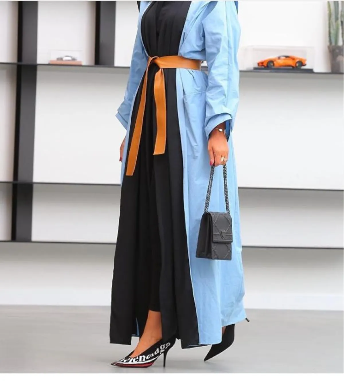 أما فاطمة حسام، فقد اختارت العبايهة البيبي بلو المفتوحة، مع حزام الخصر بلون الجملي، لإطلالة جريئة وملفتة، لكننا لم نشعر أن هناك مشكلة بالتنسيق، لإطلالة آخر موضة، خاصة أنها لم تضف الكثير من الألوان باعتماد شوز وشنطة باللون الأسود.