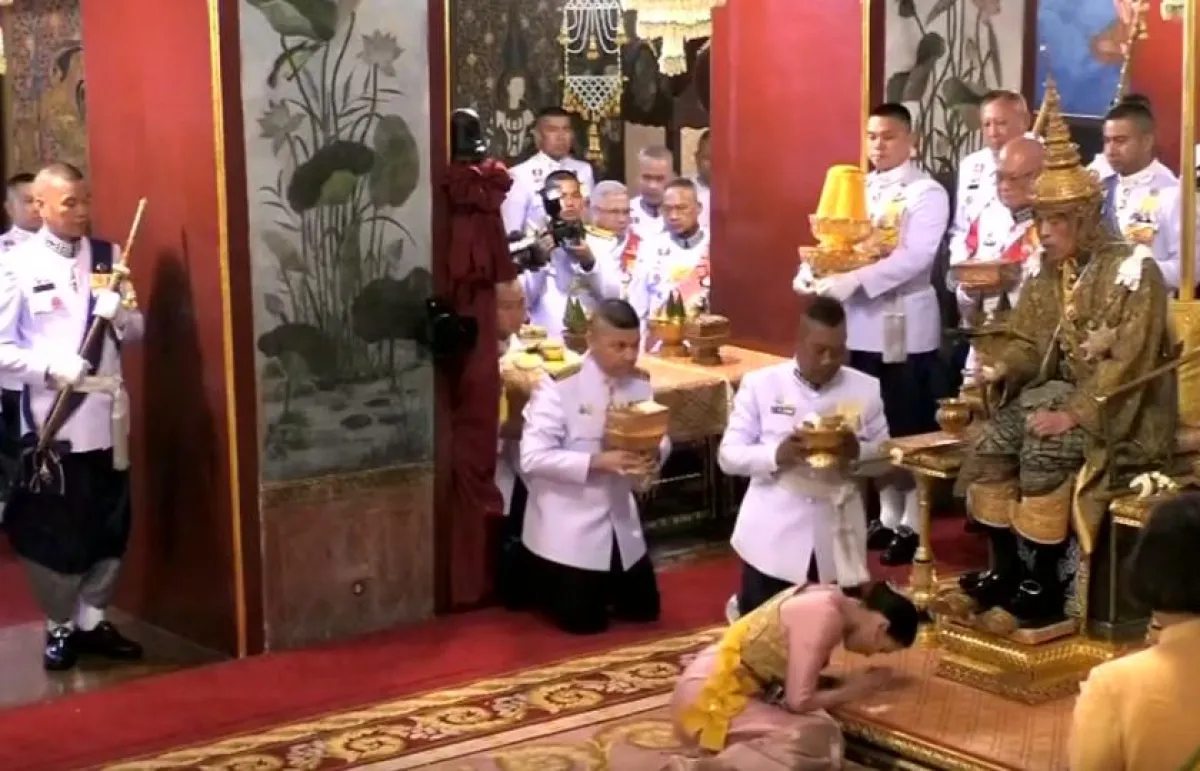 ونقلاً عن موقع «عربي بوست»، فقد ارتدى ملك تايلاند تاج «النصر العظيم»، الذي يصل وزنه إلى 7.3 كيلوغرام. وجلس الملك في قاعة العرش أسفل مظلة من 9 طبقات تحمل الرموز الملكية كافة، ومنها تاج مطلي بالذهب ومزخرف بالألماس. وكانت برفقته الملكة وأفراد الأسرة المالكة ورهبان، وفقًا لما ذكره موقع «يورونيوز».