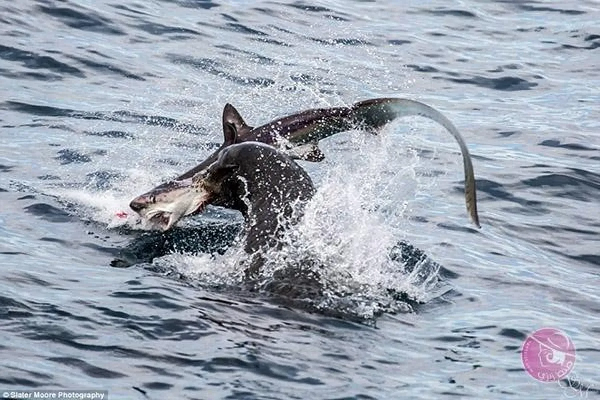 وكانت أسماك القرش المفترسة تلاحق عددًا من الأسماك الصغيرة على ما يبدو لالتهامها، فجنحت إلى الشاطئ، لكن مجموعة من الكلاب هاجمتها وطاردتها.