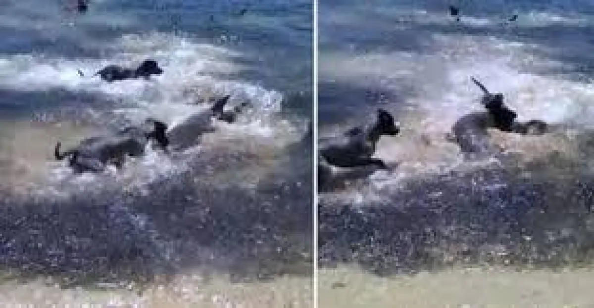 وتداول رواد مواقع التواصل الاجتماعي، فيديو لمجموعة من الكلاب وهي تهاجم سربا من أسماك القرش الضخمة على أحد الشواطئ في أستراليا.