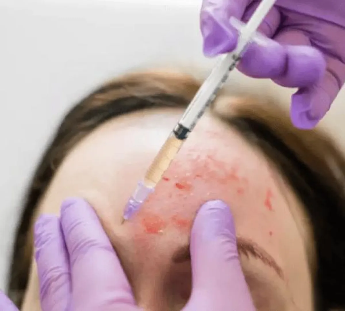 ومن ثم يقوم الأخصائي بحقن البلازما مباشرة في وجه المراجع، باستخدام أداة طبية تعرف باسم «قلم الوخز بالإبر»، الذي يجب تعقيمه جيداً بين الجلسات المتتالية للمراجعين، إذ يمكن لهذا «القلم» نقل أمراض دموية مميتة.