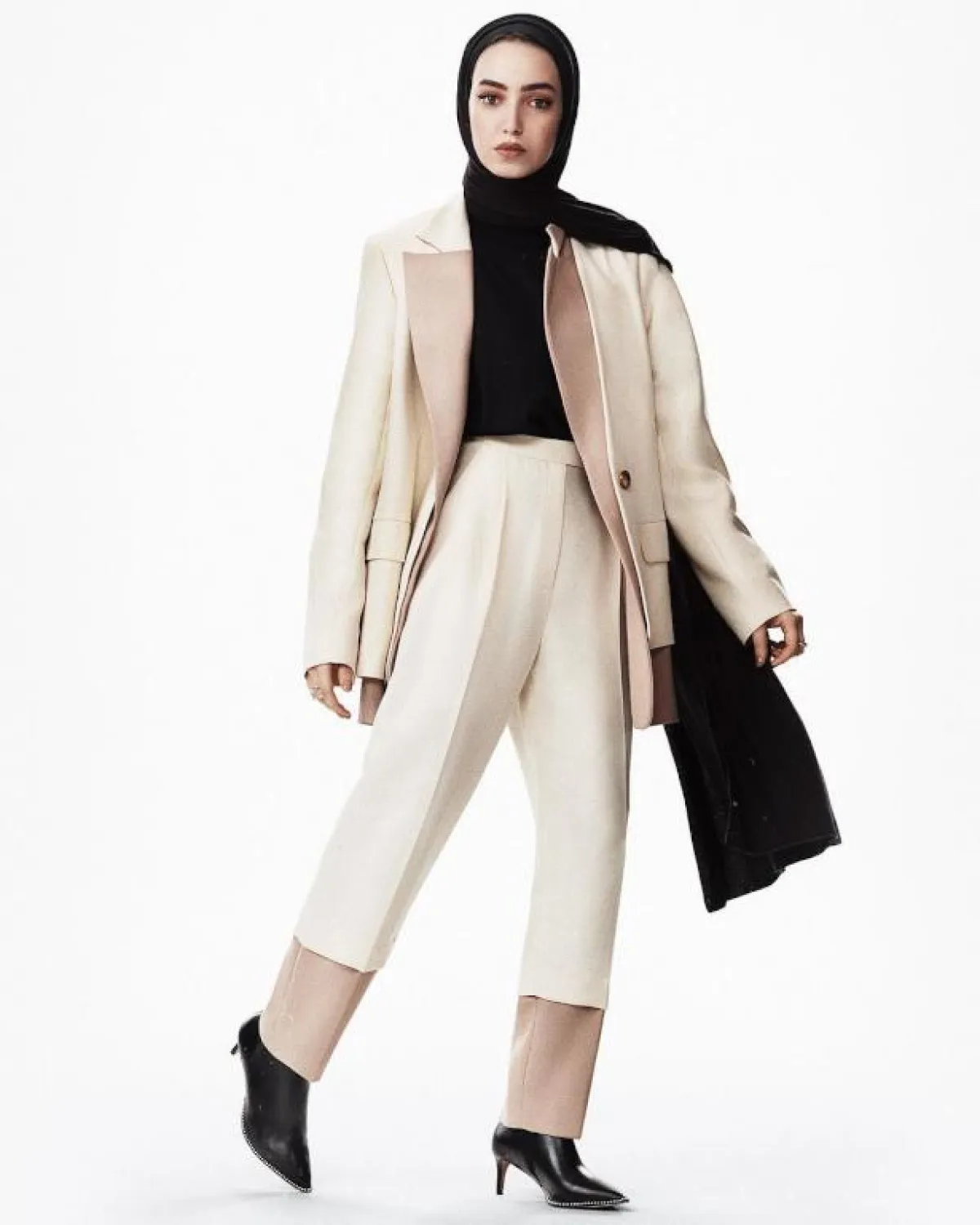 البدلات البيج ودرجات الباستيل تناسب المحجبات