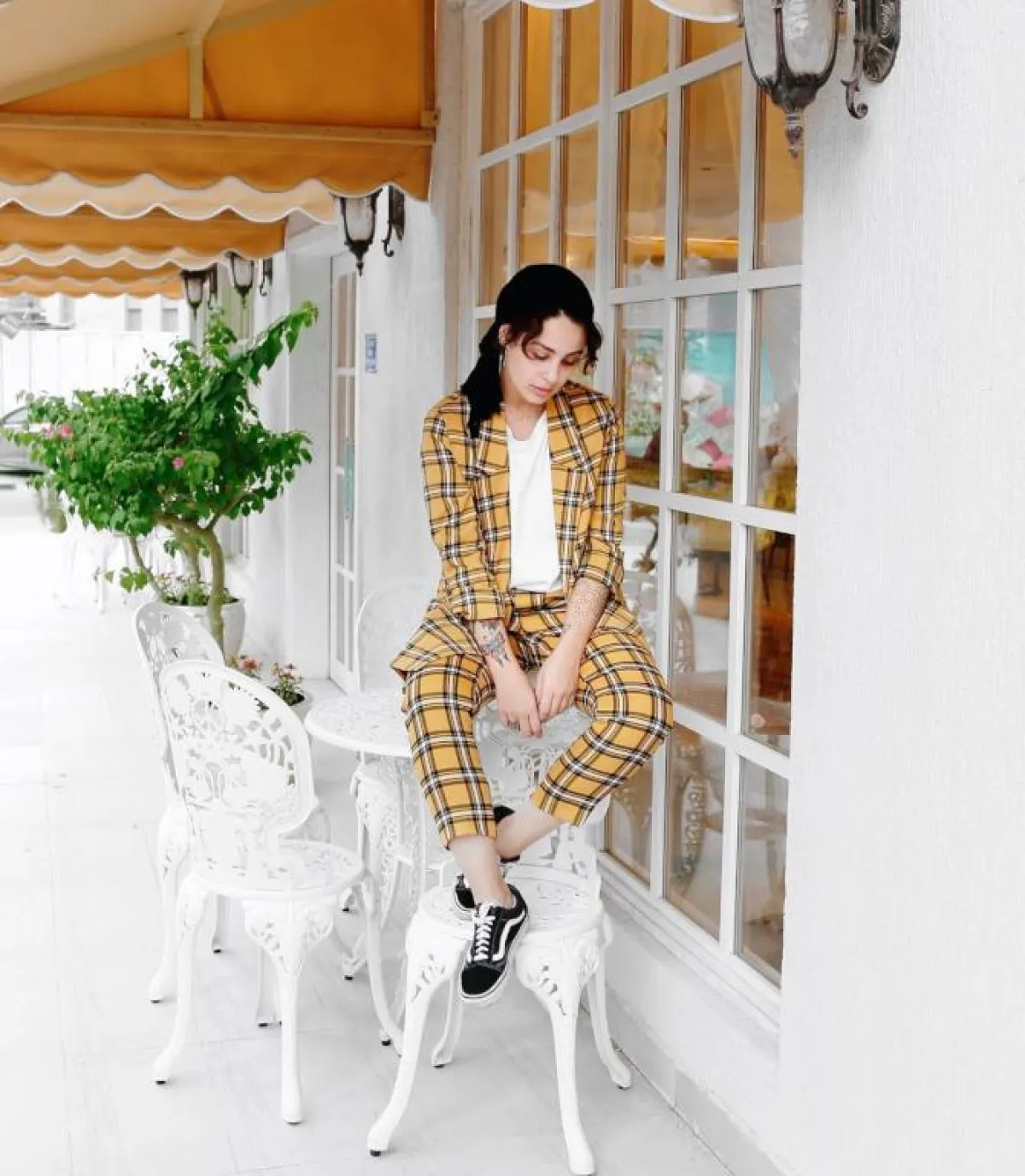 اعتمدت المدونة الكويتية آسيا، المعروفة بأسلوبها العصري، بدلة صفراء بلون الكركم الداكن، ونسقت معها تي شيرت أسود، وحذاءً رياضيًّا، وكعادتها لفت الحجاب بطريقة التوربان، مع زوج من الأقراط الدائرية الرائجة هذا الموسم.