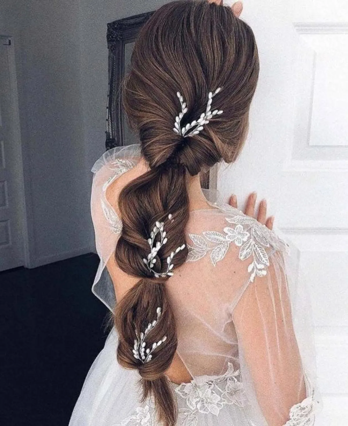 مع المكياج المخملي بألوان مستوحاة من الطبيعية بموسم الربيع، اختاري تسريحة شعر متكسر، بخاصة وإن كان شعركِ طويلًا، مع اكسسوارات الشعر الكريستالية، والطرحة المزينة بالتول، وستناسب أيضًا هذه التسريحة فستانكِ البسيط، من دون الكثير من التطريزات.