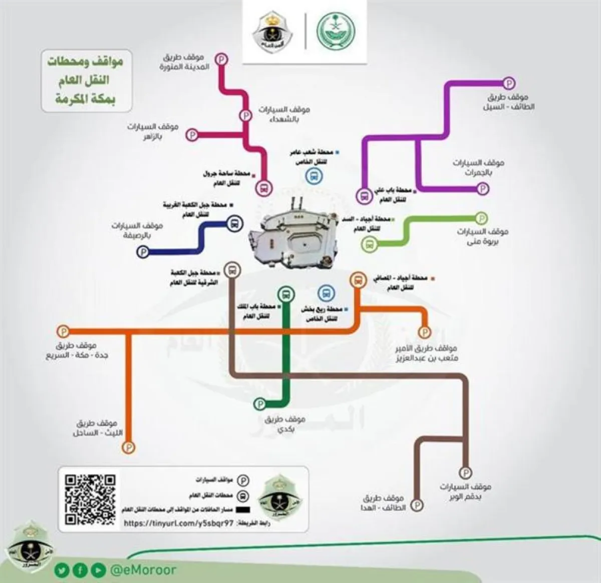كما نصحت بإيقاف المركبات في إحدى محطات النقل العام الأقرب للزوار والمعتمرين، وأرفقت صورة خريطة توضيحية للاسترشاد بها.
