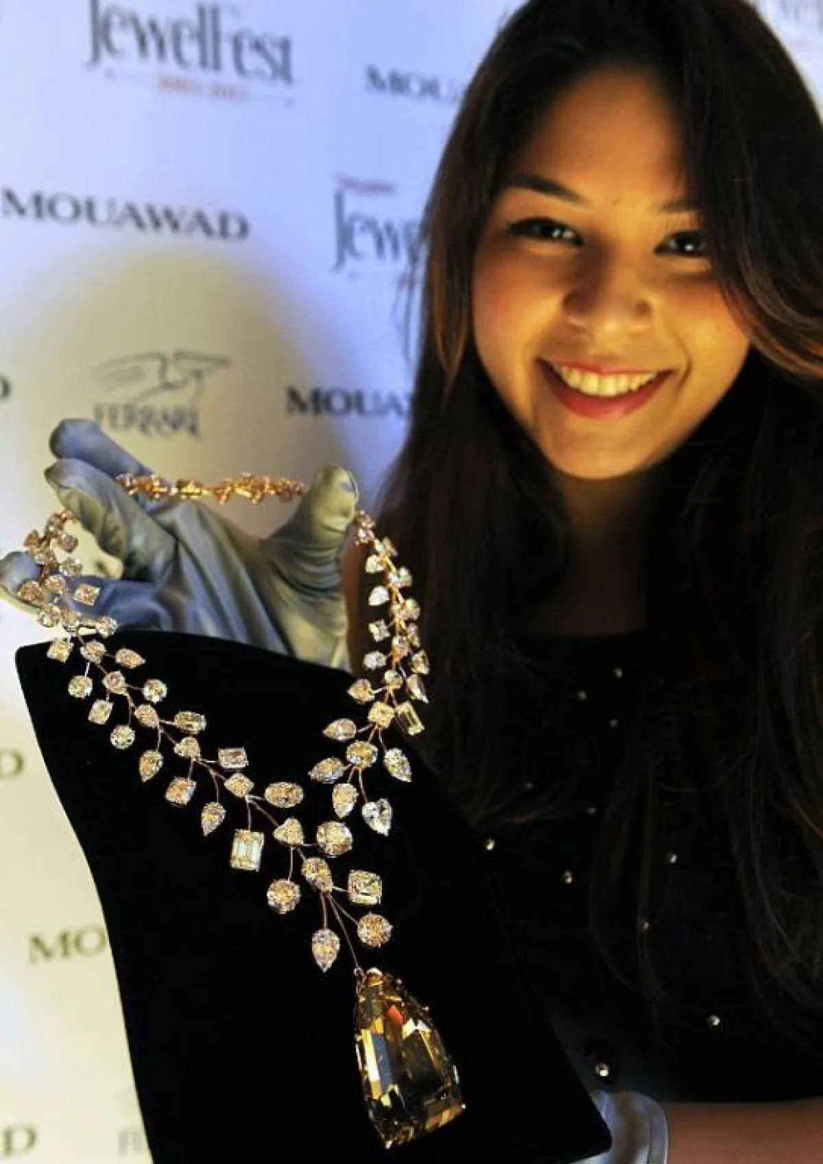 وقال جان نصر المدير الإداري لدار معوض في سنغافورة:" إنّ زوجين من آسيا - امتنع عن ذكر جنسيتهما - أبديا اهتمامًا جديًّا في شراء القلادة التي يبلغ ثمنها 55 مليون دولار". وأضاف:" من يسعون لاقتناء أشياء مثل هذه ينظرون للأمر من منظور مختلف." ويفتتح مهرجان المجوهرات في سنغافورة في 11 أكتوبر تشرين الأول الجاري، ويستمر حتى 20 من الشهر ذاته".