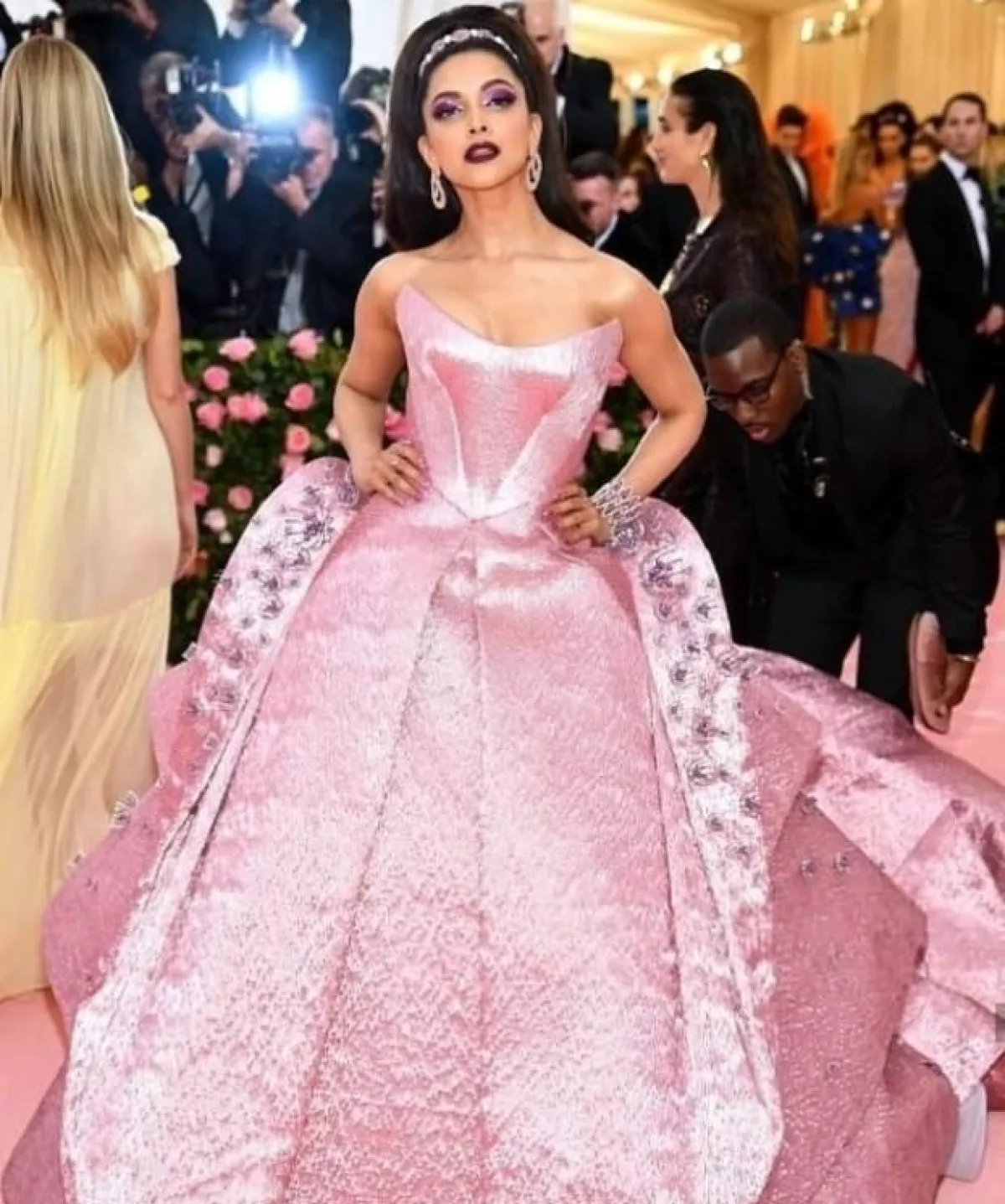 أما النجمة ديبيكا بادوكون فبدت كالباربي على سجادة met gala، حيث ظهرت بثوب زهري رائع التصميم من Zac Posen لفت أنظار الحضور إليها.