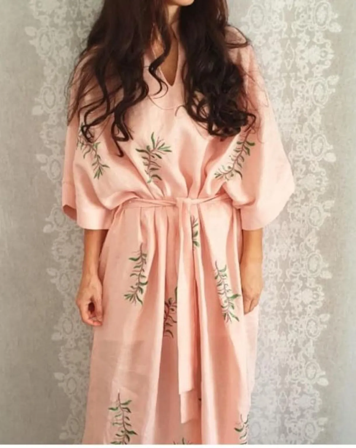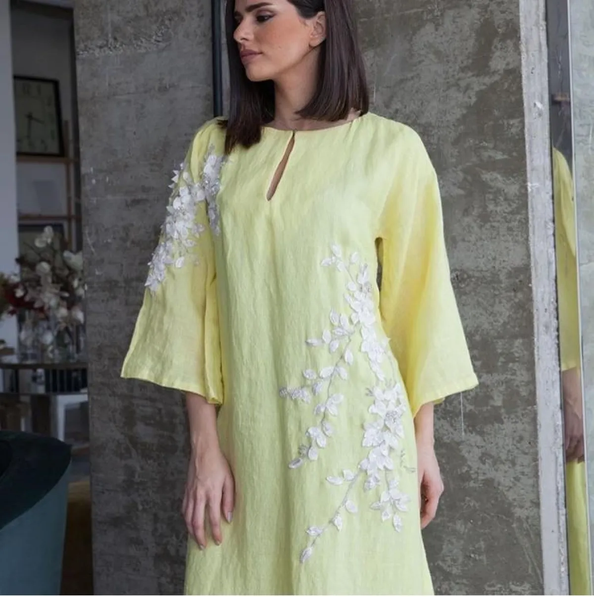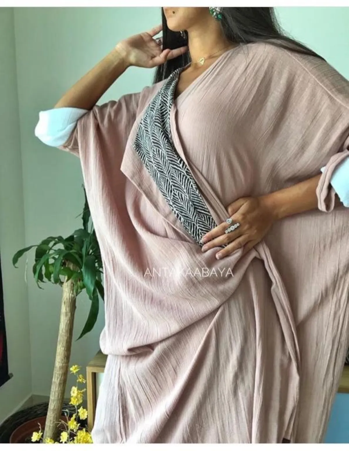 عباية لينن لوفت linen_loft مع رسومات الخيوط على أشكال فروع الشجر، مثالية لاطلالتكِ في الصيف الحار، وبأجواء رمضان المميزة، نسقيها مع حزام الخصر من خامة العباية نفسها، وارتدي معها الجينز الأسود، أو التنانير الميدي.