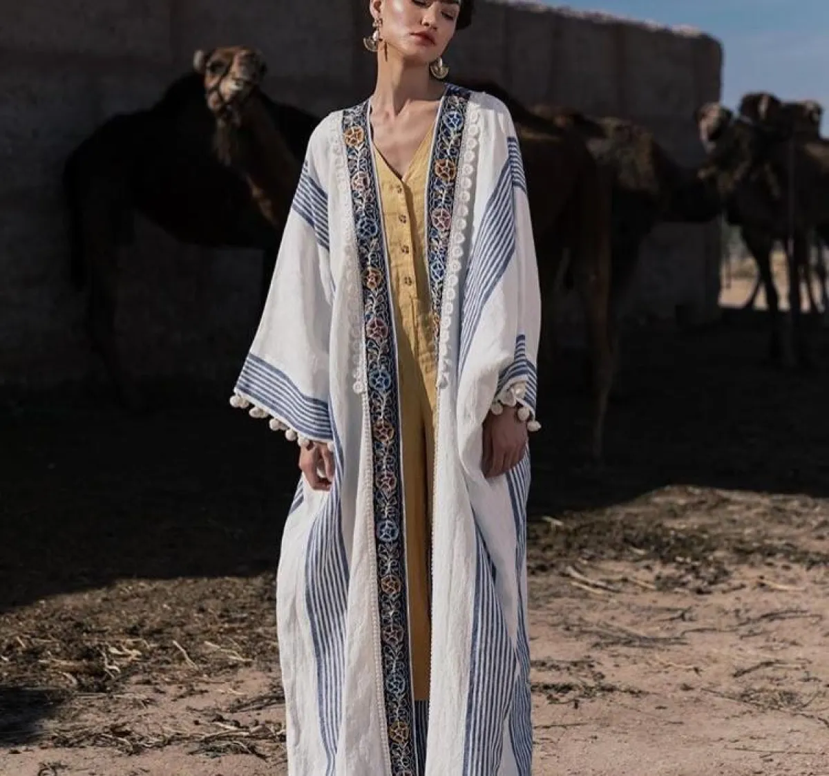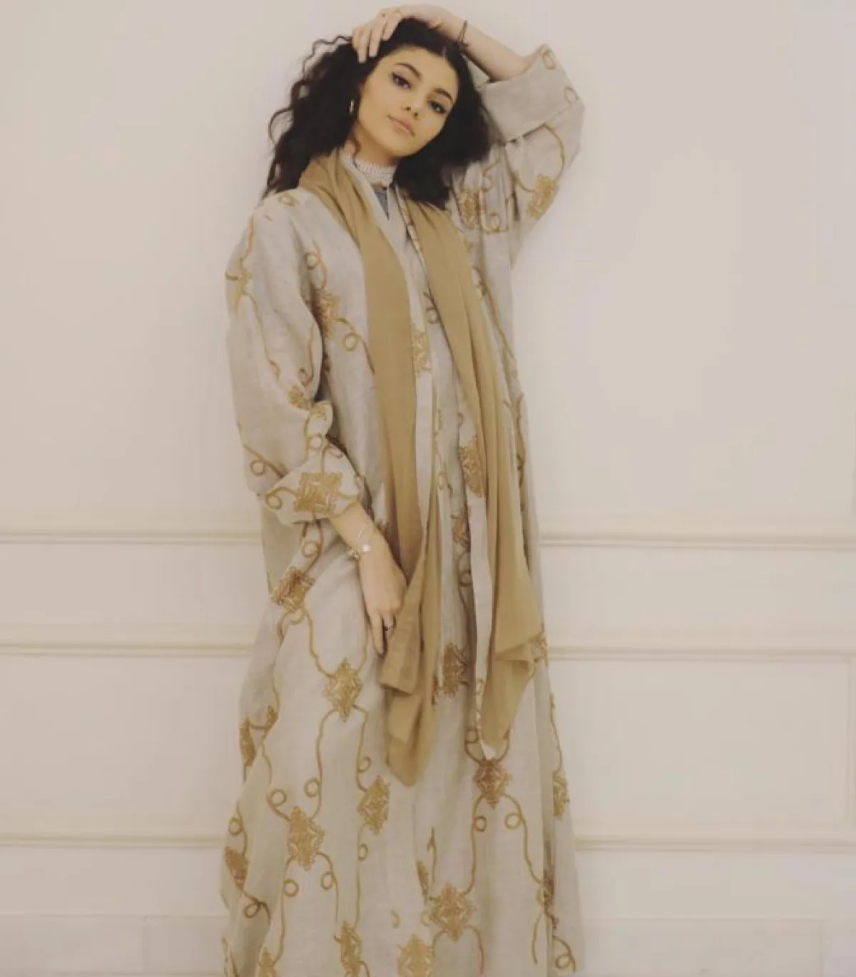 هذه العباية المنسدلة والواسعة من kettan abayas كتان عباية، سوف تمنحكِ لوك شبابيًّا، حتى وإن كنتِ سيدة بعمر الأربعين ستبدين معها أنيقة وجذابة، بخاصة وأنّ درجة البيج الأوف وايت، والتطاريز بالخيوط الصفراء، مناسبة لكل ألوان بشرة الصبايا لا سيما بشرتنا الخمرية المميزة.