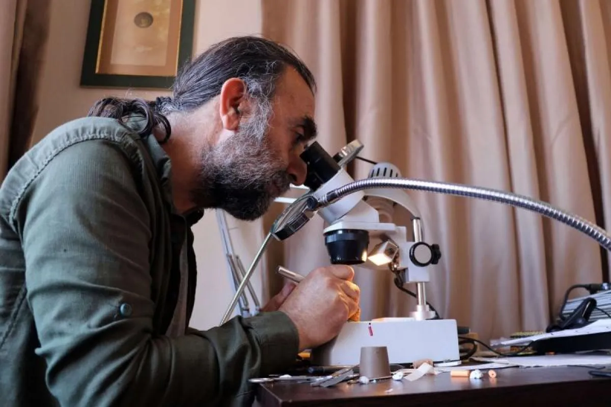 وأوضح أنه لا يستطيع استخدام فرشاة من تلك المتوفرة في الأسواق، وإنما شعرة عنكبوت بسمك 0.02 ملم، مضيفاً «استخدمت إبرة نحلة من أجل تصحيح الأخطاء بسبب تشوّه الكتابة المئات من المرات».