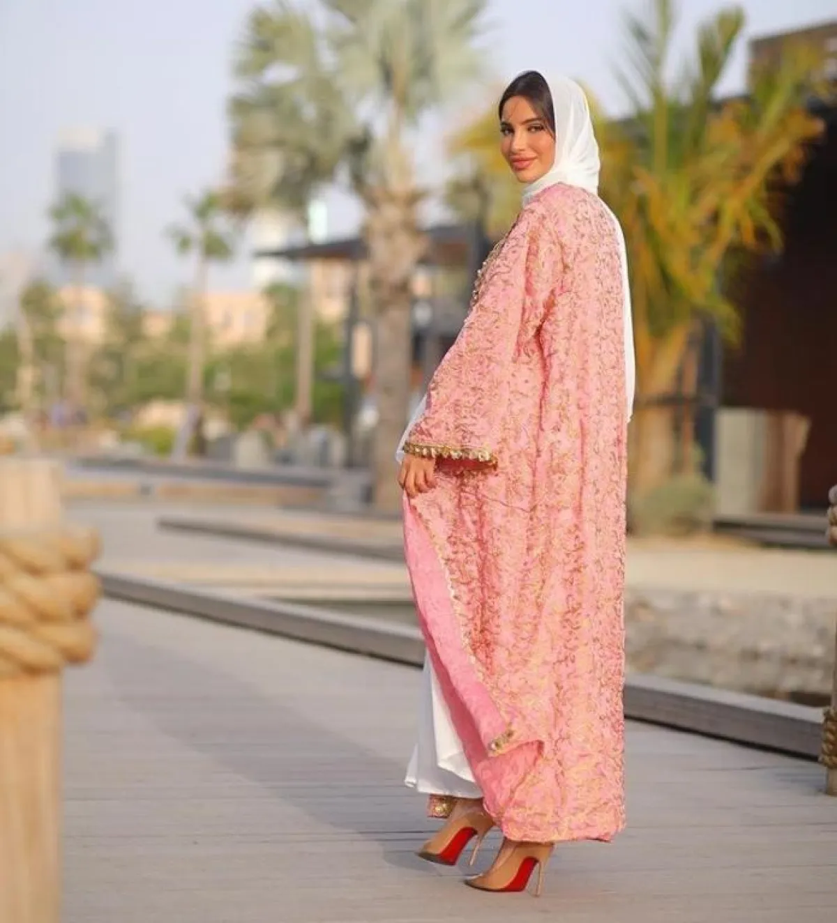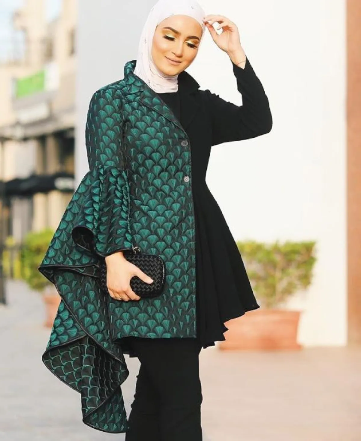 أطلت علينا الفاشينيستا الكويتية دلال الدوب باطلالة فخمة كعادتها، بستايل بدلة منقسمة لجزأين، أحدهما بنقوشات قشور السمك، والنصف الآخر باللون الأسود، بدت غاية في الفخامة مناسِبة للحفلات الكبيرة بنهار رمضان ومن بعد الإفطار، نسقت معها حجابها الأبيض، وبالرغم من أنّ اللون كان مختلفًا كثيرًا إلا أنه بدا مألوفًا.