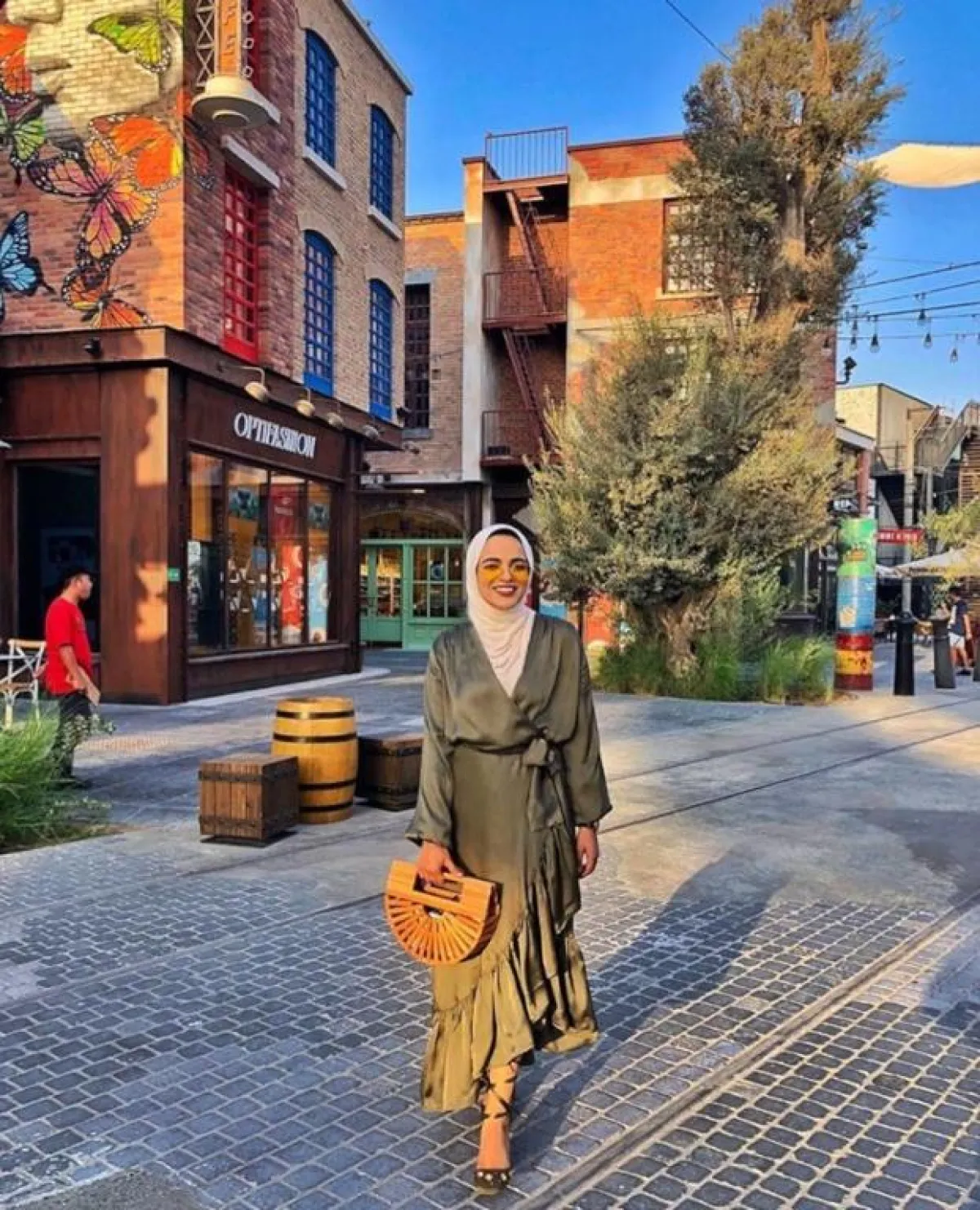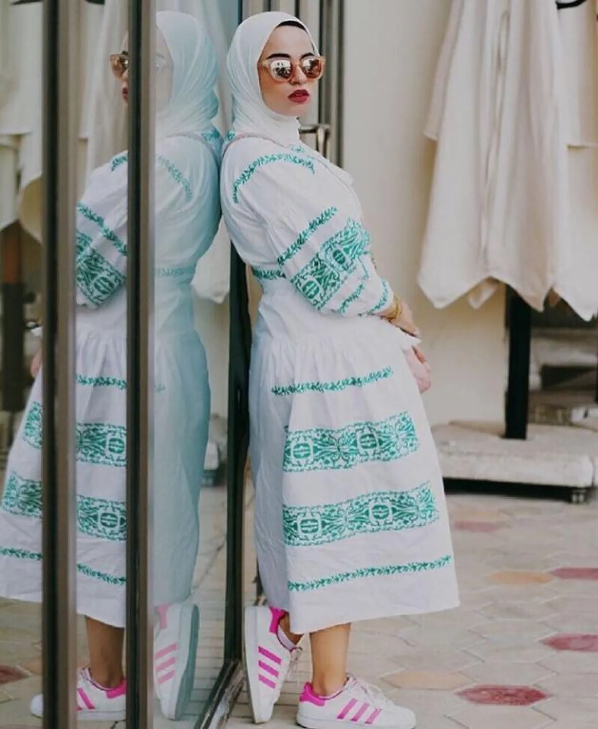 أما هذا الفستان الأبيض المنفوش قليلًا مع الرسومات المستوحاة من الخط العربي، ستبدو مميزة لاطلالاتكِ النهارية برمضان، نسقيه مع صندل مفتوح، وشنطة فولكلورية ليكتمل اللوك الرمضاني.