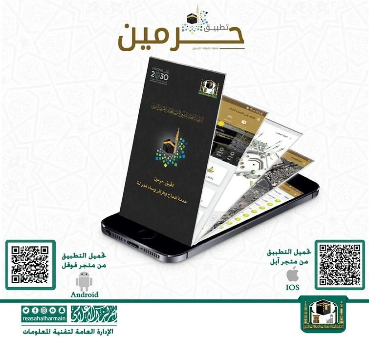 في إطار حرص الرئاسة العامة لشؤون المسجد الحرام والمسجد النبوي على تسخير التطبيقات الذكية والتقنيات الحديثة في خدمة ضيوف الرحمن، أطلقت الرئاسة ضمن خطتها التشغيلية لموسم رمضان لهذا العام العديد من الخدمات على منصة «تطبيق حرمين» للهواتف الذكية.