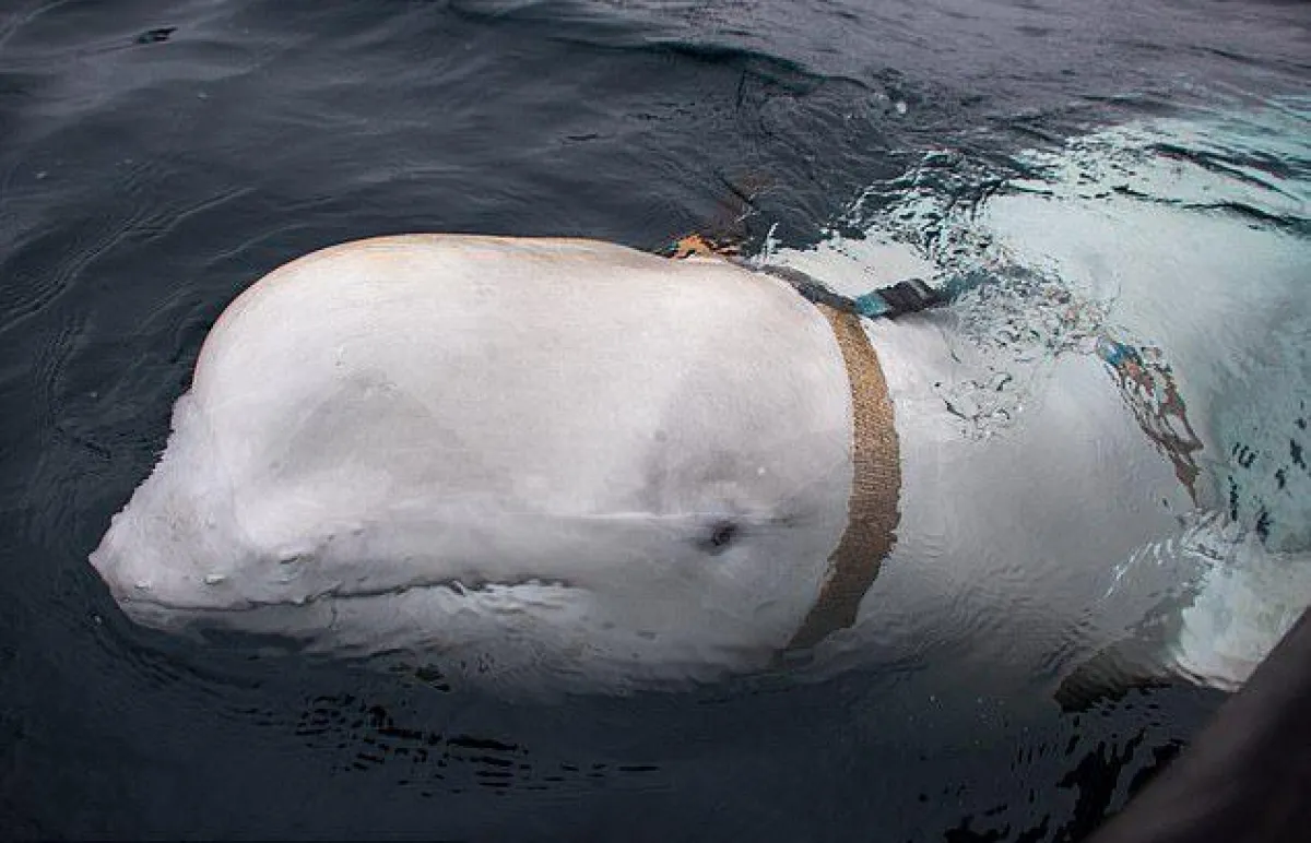 وبحسب صحيفة الـ«دايلي ميل» البريطانية، فقد تم تصوير الحادثة من قبل السائحة Isa Opdahl أثناء استقلالها لقارب مع أصدقائها في ميناء هامرفست، يوم الإثنين 6 مايو، وأثارت اللقطات تكهنات البعض حيث اعتقدوا أن الحوت الذي ظهر في المقطع هو نفس الحوت الذي دربه الجيش الروسي باعتباره «جاسوسًا»، في حين رأى خبراء في البحرية أن المخلوق تم تدريبه كعميل روسي إلا أنّه فرّ من منشأة تدريب.
